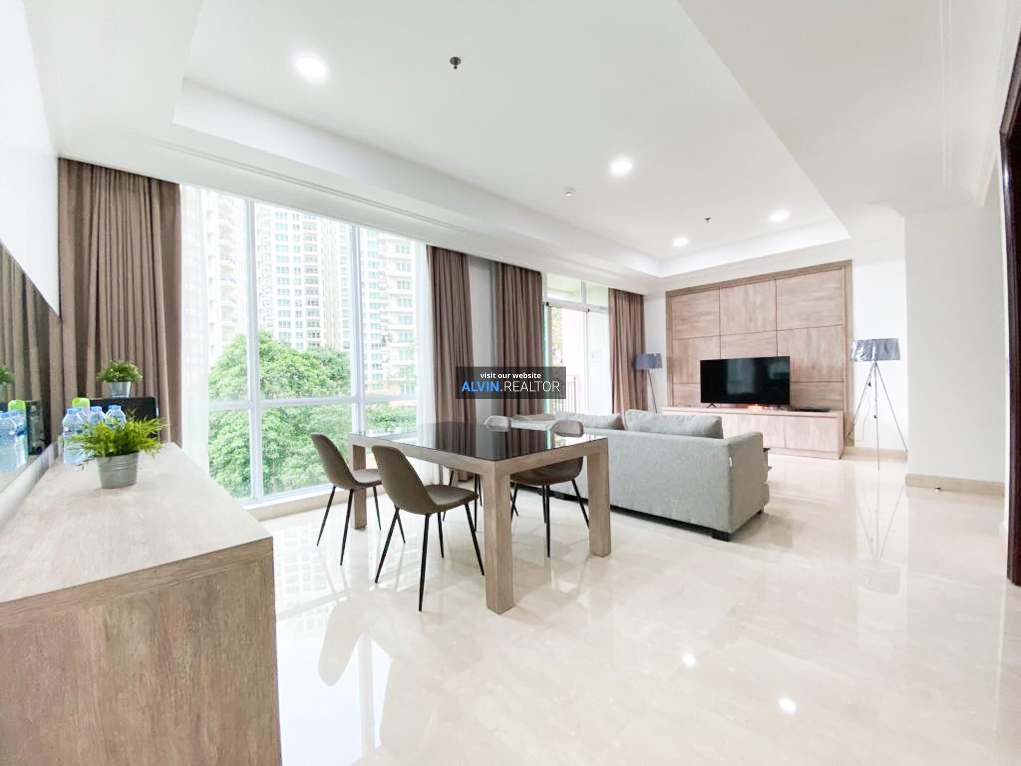 Disewa Apartemen Pakubuwono View Tower Redwood, luas 153 m2, terdiri dari 2 kamar tidur, 2 kamar mandi, maid room, kondisi fully furnished, posisi low floor.