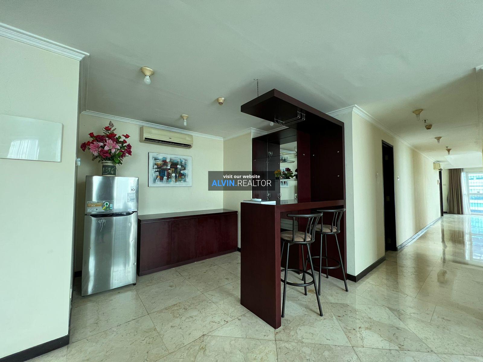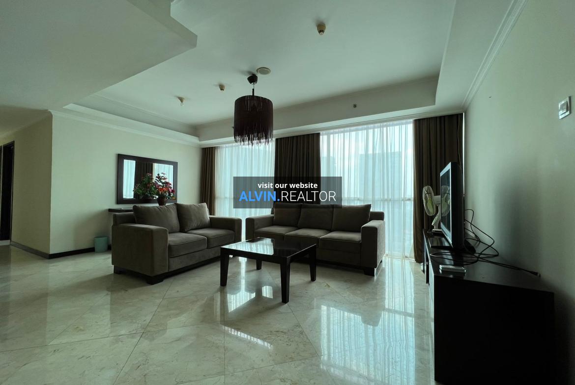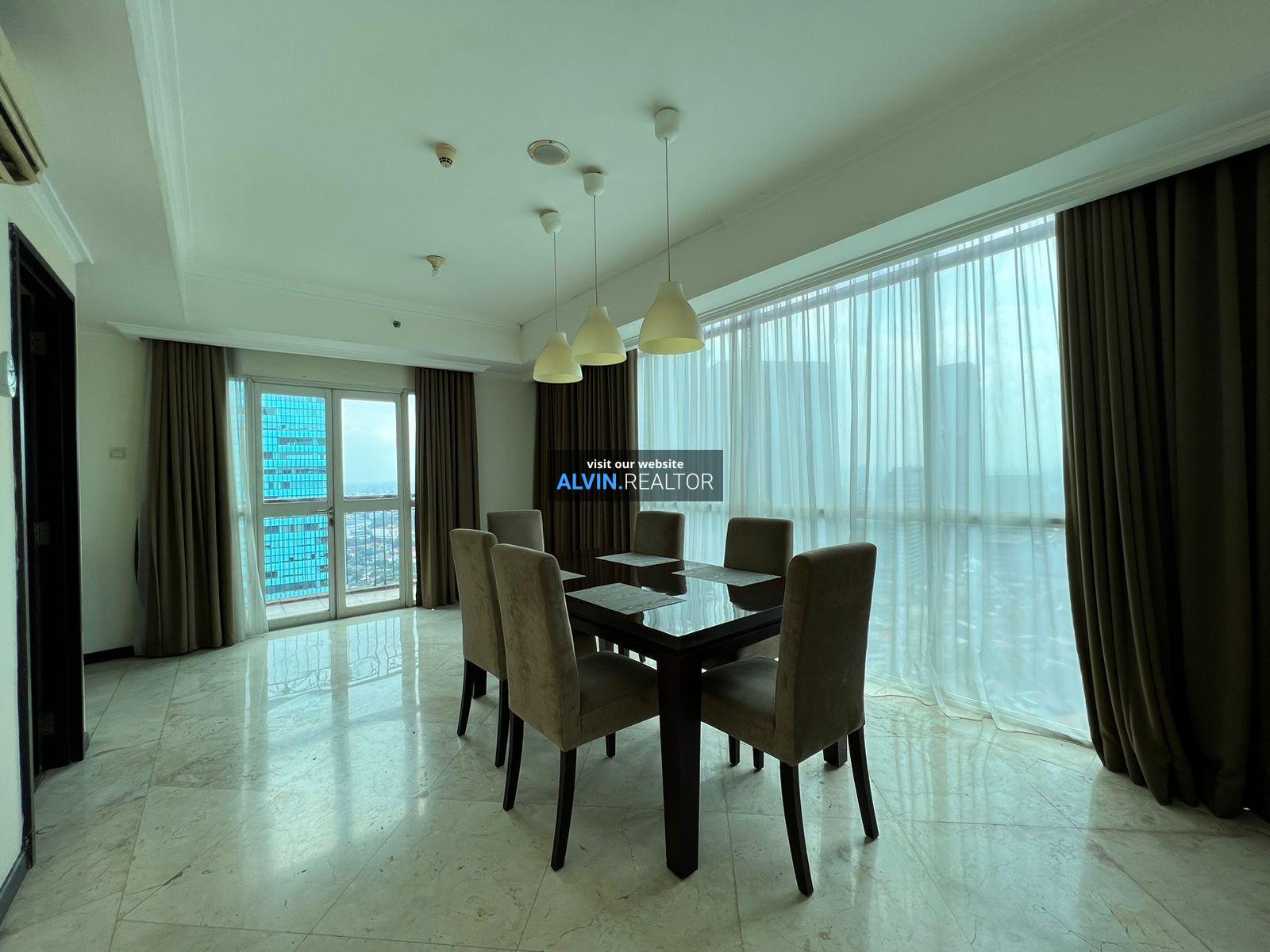 Dijual Apartemen Bellagio Residence Tower A, luas 203 m2, terdiri dari 3 kamar tidur, 2 kamar mandi, maid room, kondisi fully furnished, posisi high floor.