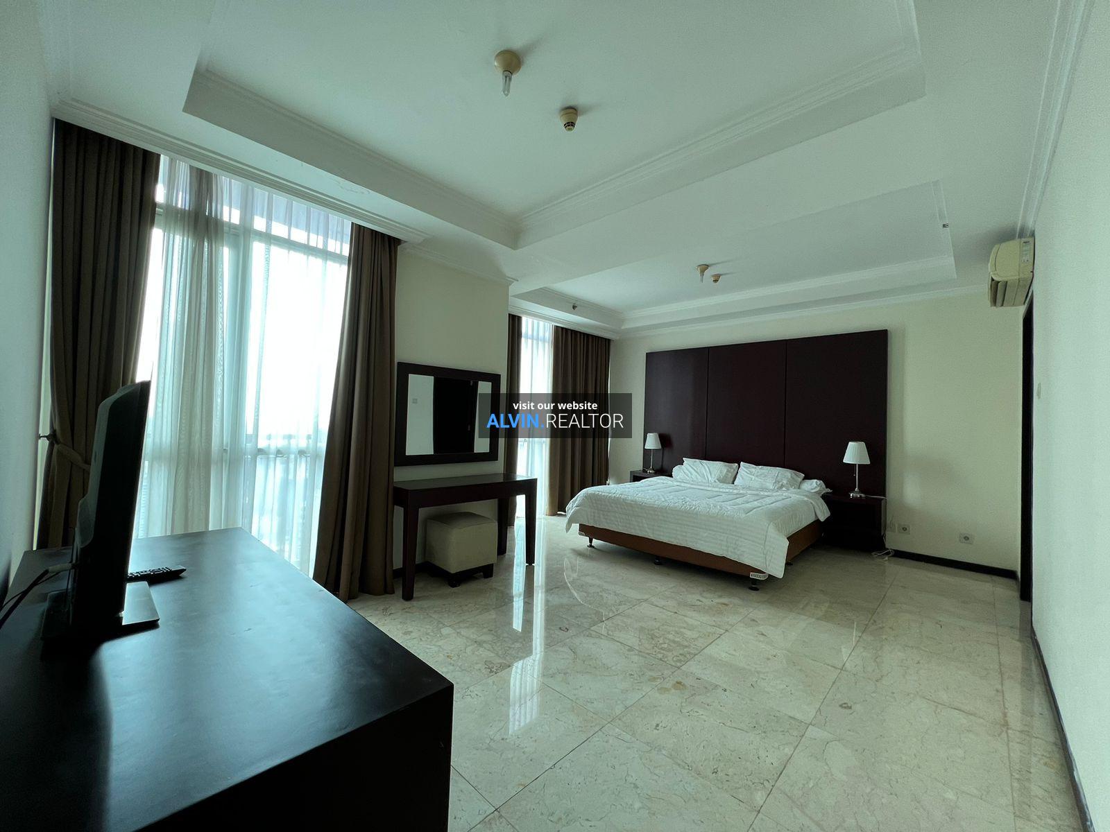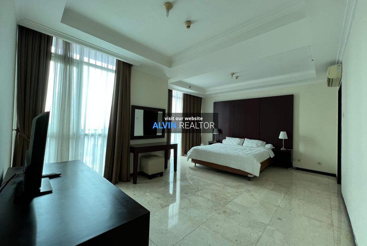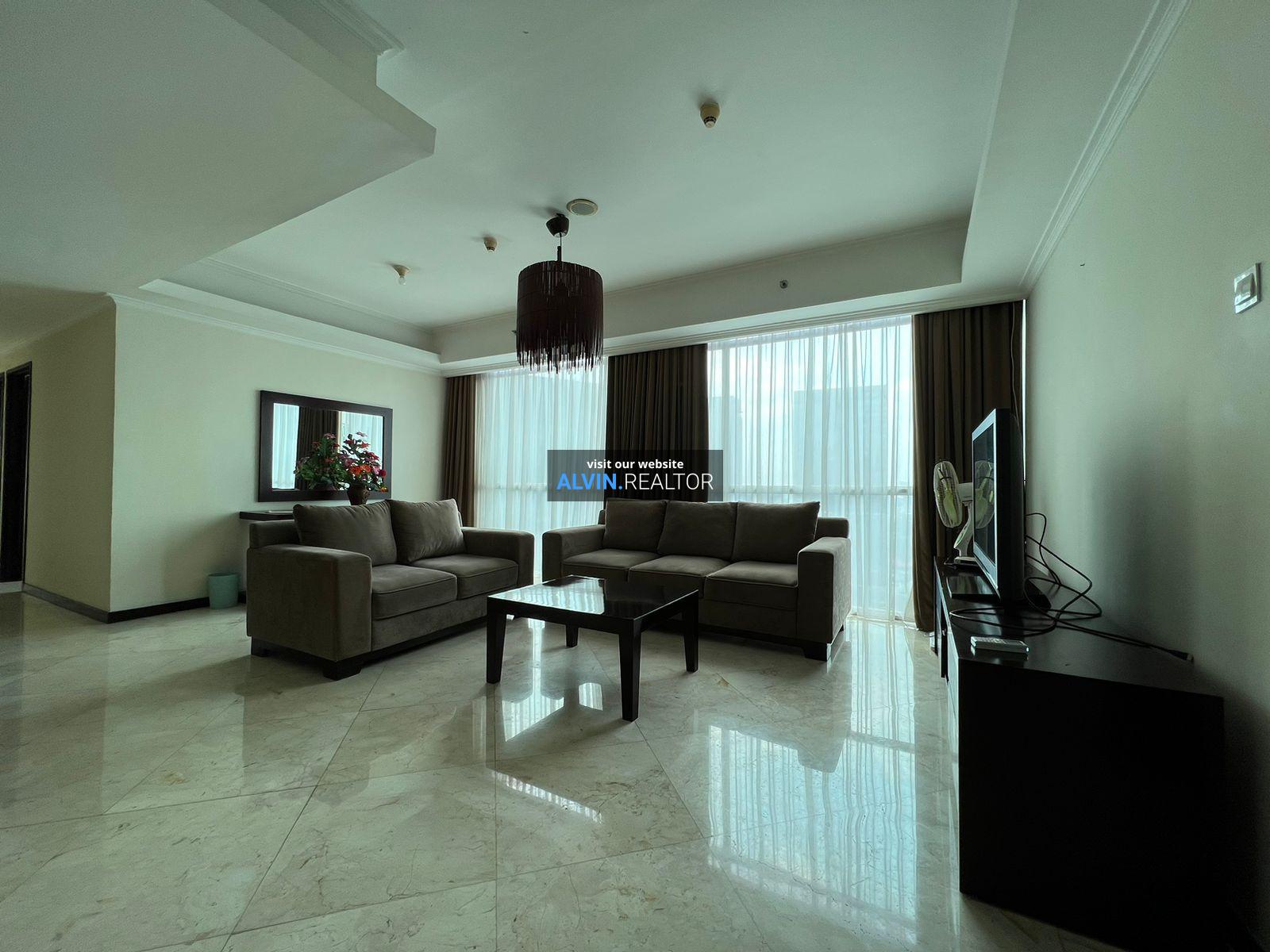 Dijual Apartemen Bellagio Residence Tower A, luas 203 m2, terdiri dari 3 kamar tidur, 2 kamar mandi, maid room, kondisi fully furnished, posisi high floor.
