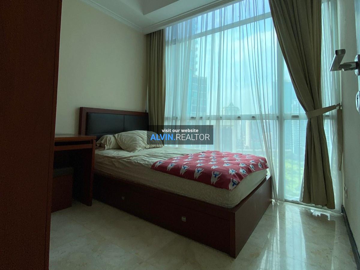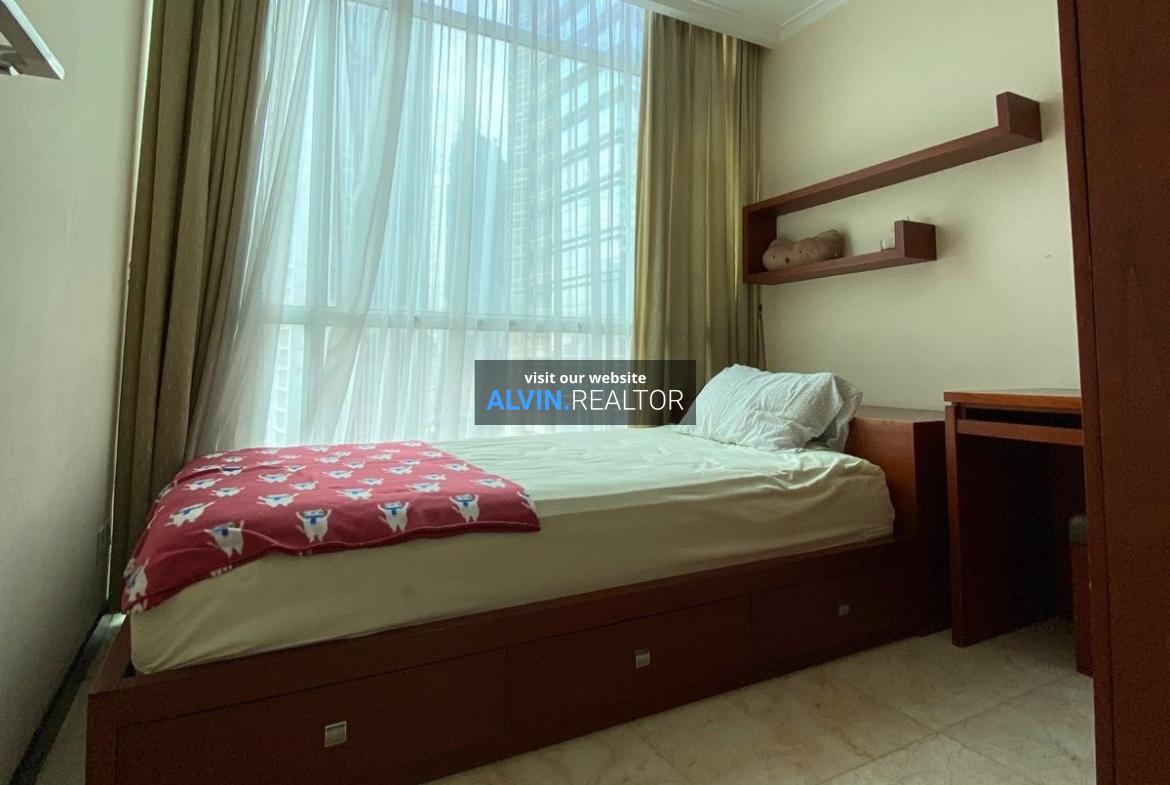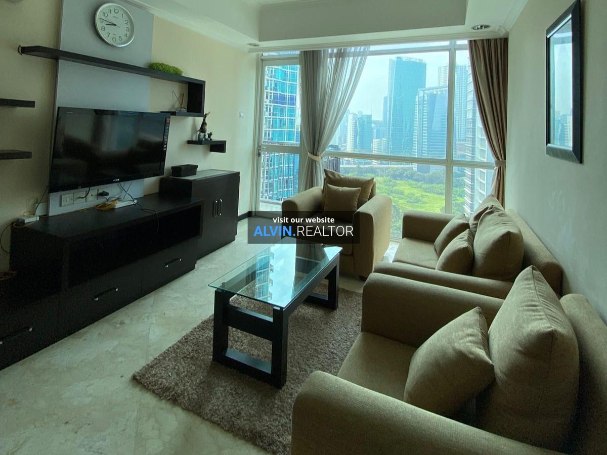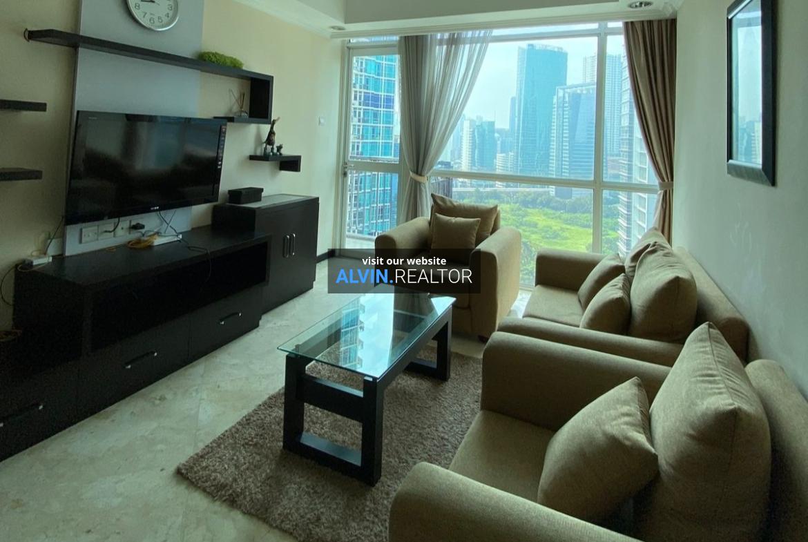 Dijual Apartemen Bellagio Residence Tower A, luas 104 m2, terdiri dari 3 kamar tidur, 2 kamar mandi, maid room, kondisi fully furnished, posisi high floor.