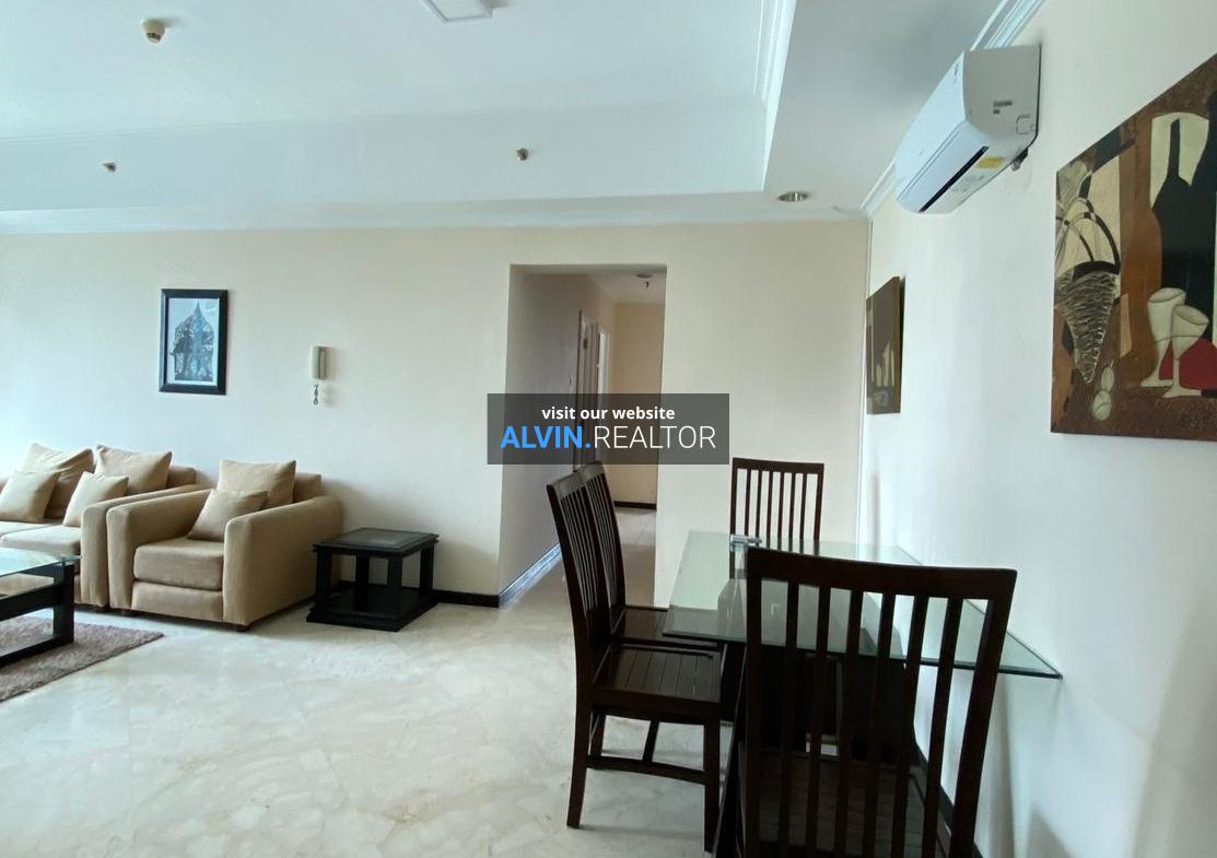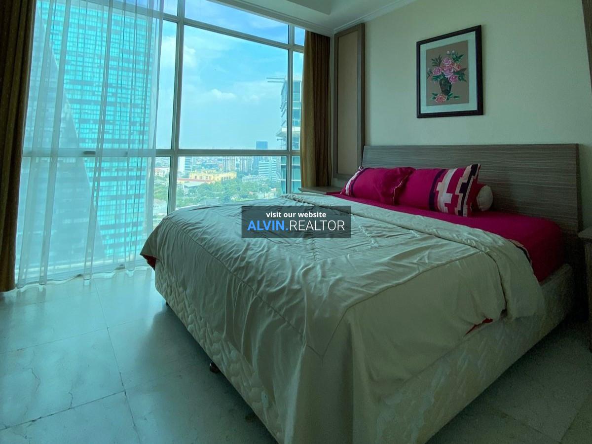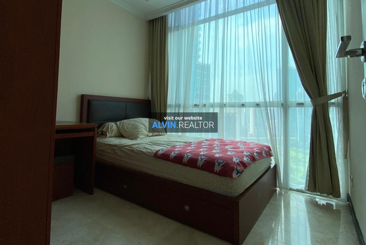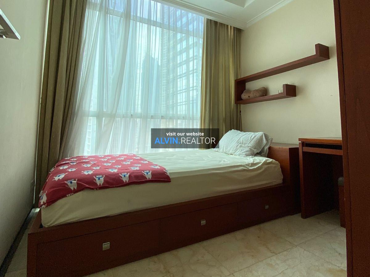 Dijual Apartemen Bellagio Residence Tower A, luas 104 m2, terdiri dari 3 kamar tidur, 2 kamar mandi, maid room, kondisi fully furnished, posisi high floor.