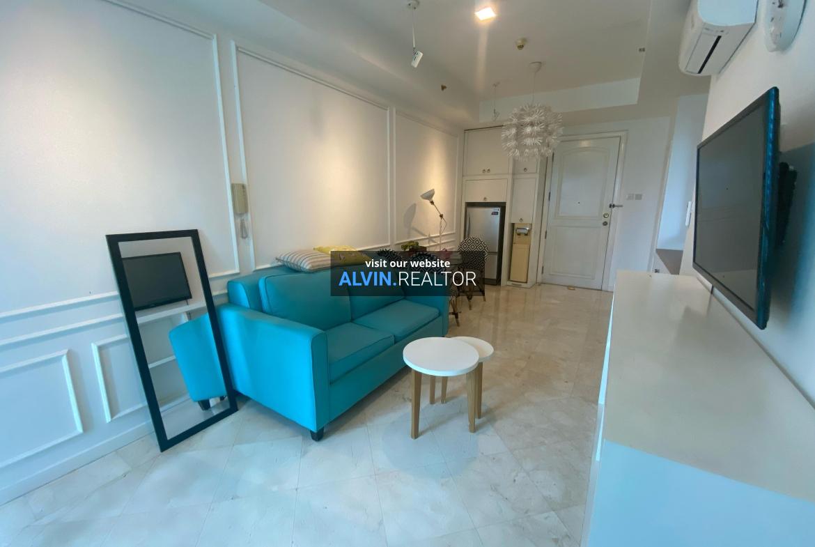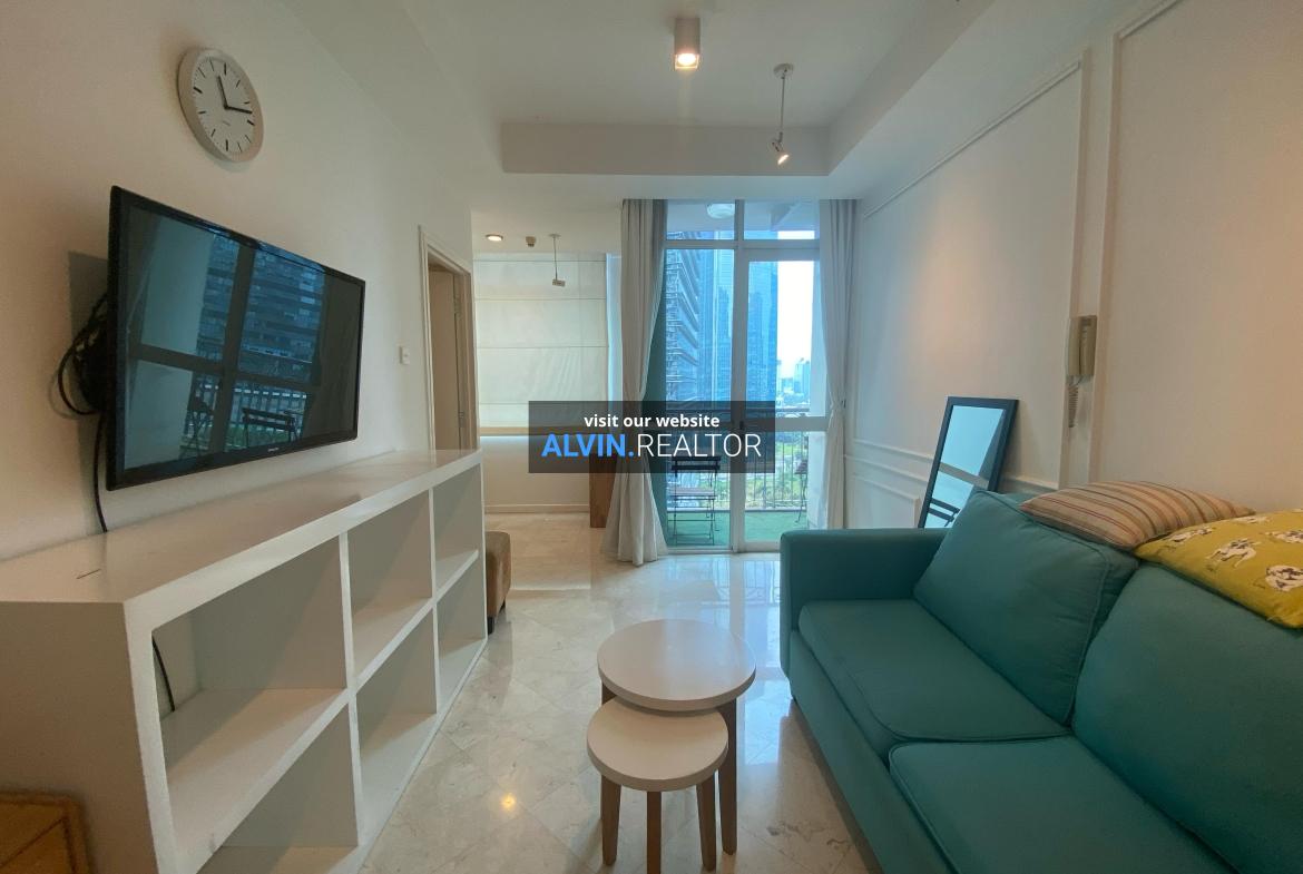 Disewa Apartemen Bellagio Residence Tower A, luas 58 m2, terdiri dari 1 kamar tidur, 1 kamar mandi, study room, kondisi fully furnished, posisi middle floor.