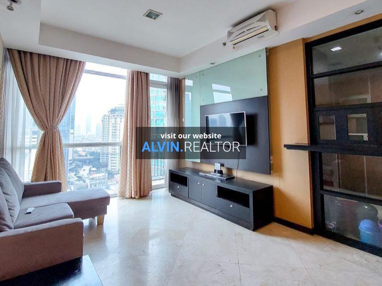 Dijual Apartemen Bellagio Residence Tower A, luas 104 m2, terdiri dari 3 kamar tidur, 2 kamar mandi, maid room, kondisi fully furnished, posisi middle floor.