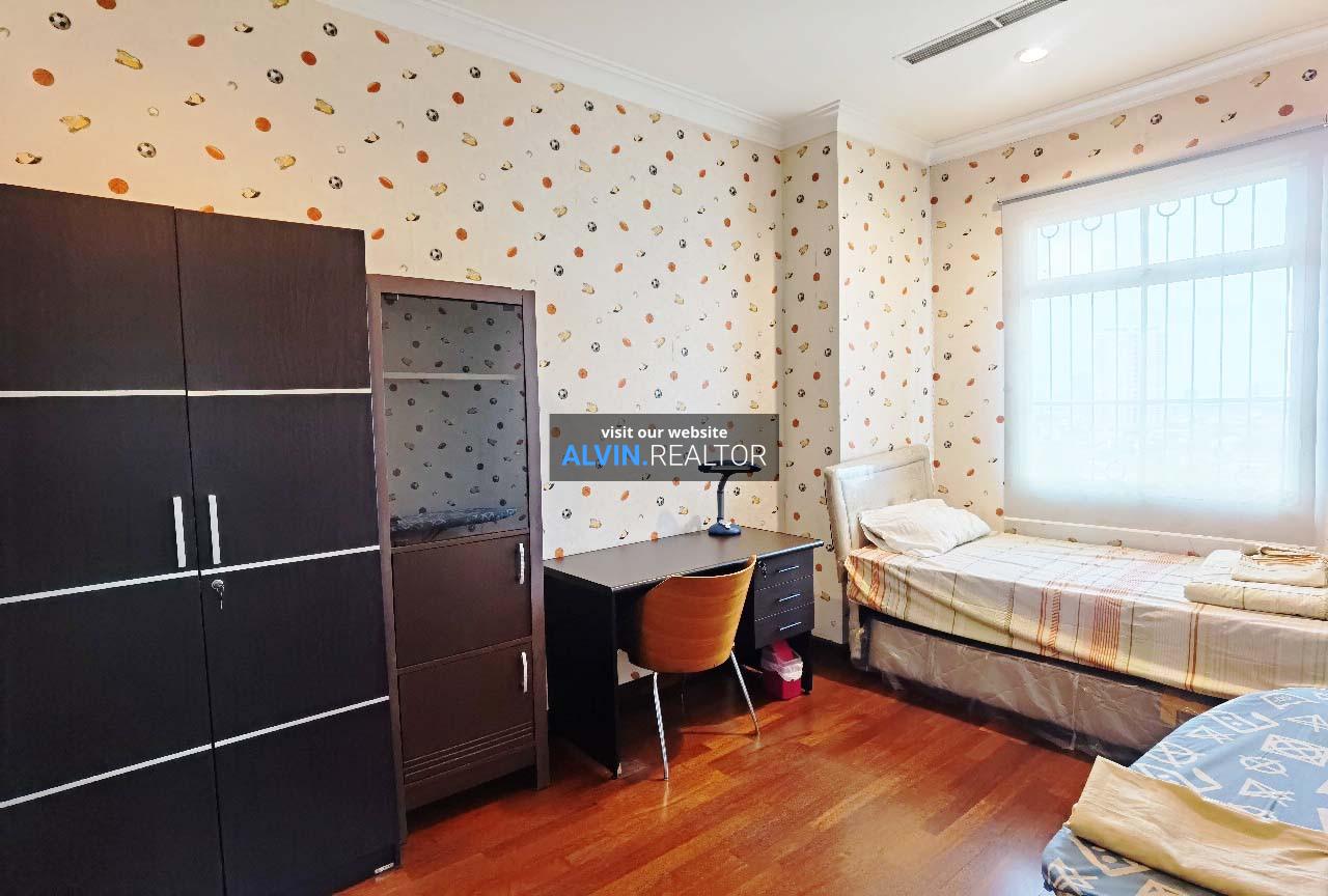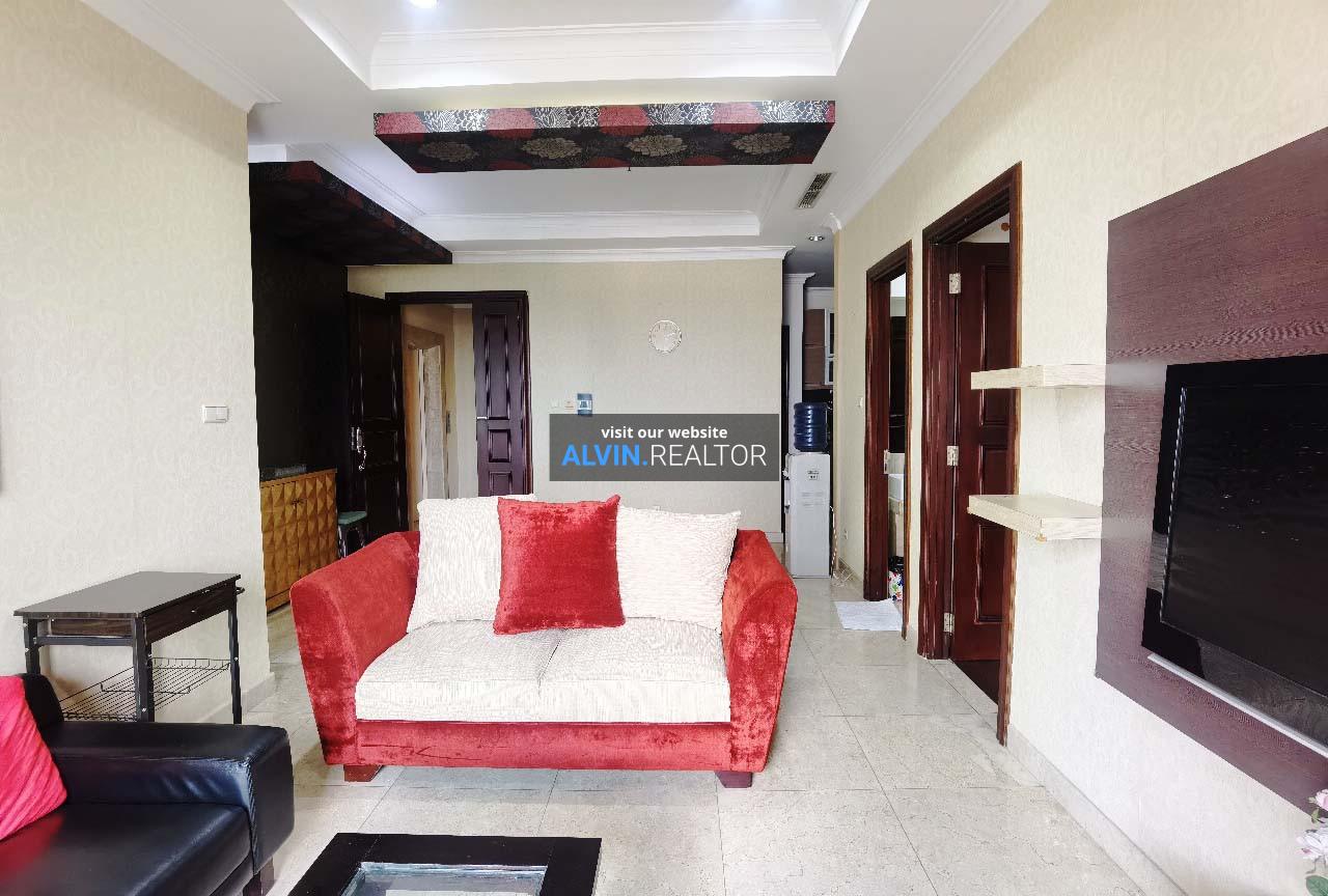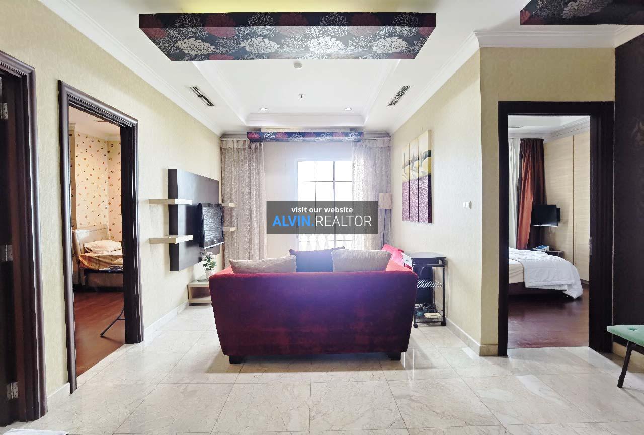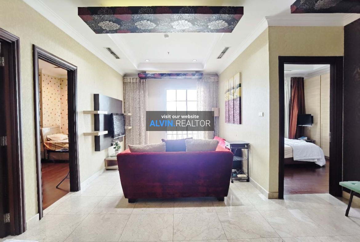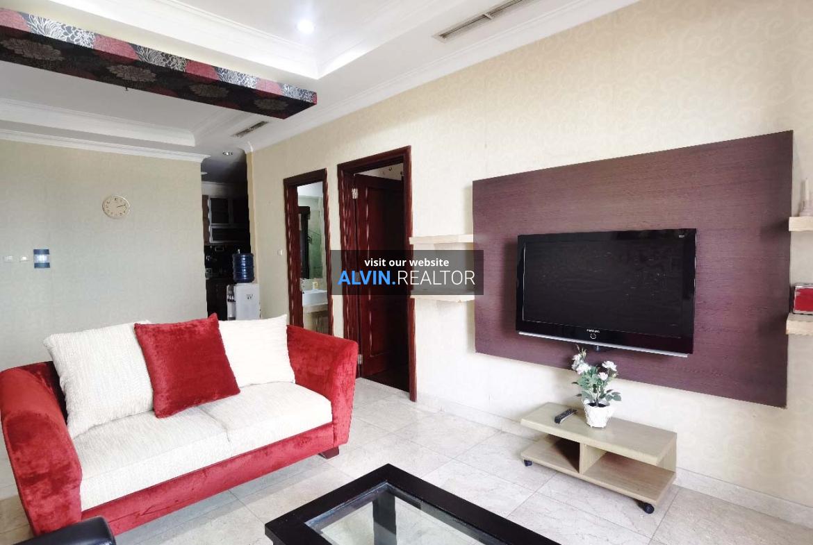 Disewa Apartemen Bellezza Tower Louvre, luas 120 m2, terdiri dari 2 kamar tidur, 2 kamar mandi, maid room, kondisi fully furnished, posisi middle floor.
