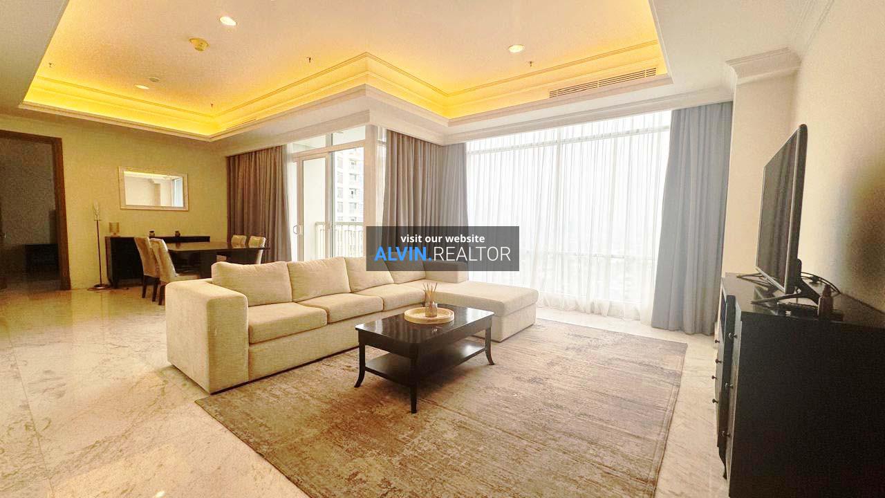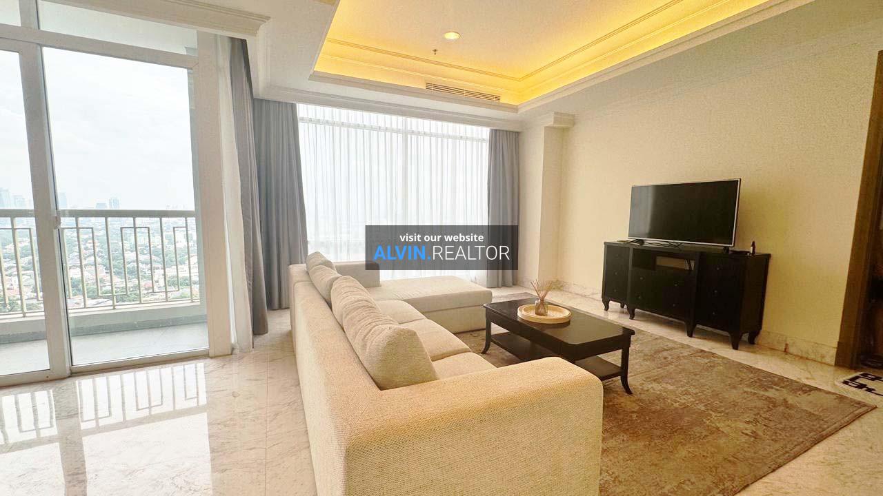 Disewa apartemen Botanica Tower 1, luas 157 m2, terdiri dari 2 kamar tidur, 2 kamar mandi dan maid room, kondisi fully furnished, terletak di lantai 35 (HIGH), unit 35C.