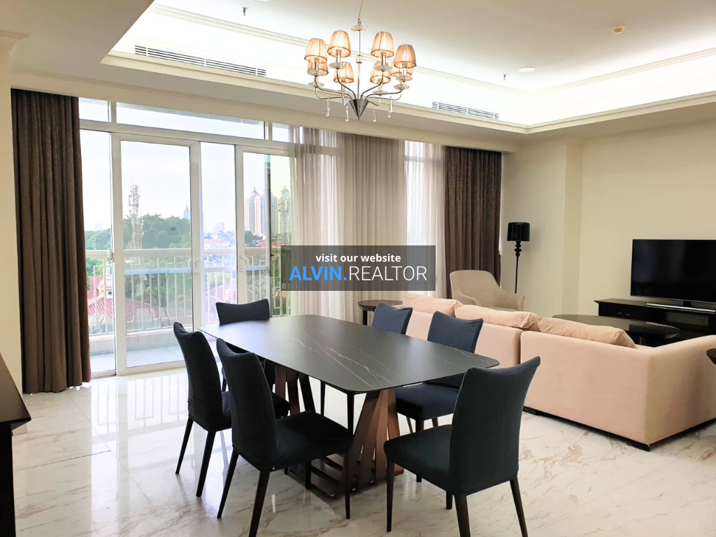 Disewa apartemen Botanica Tower 3, luas 195 m2, terdiri dari 2 kamar tidur, 2 kamar mandi dan maid room, study room, kondisi fully furnished, terletak di lantai 5 (LOW), unit 5A.