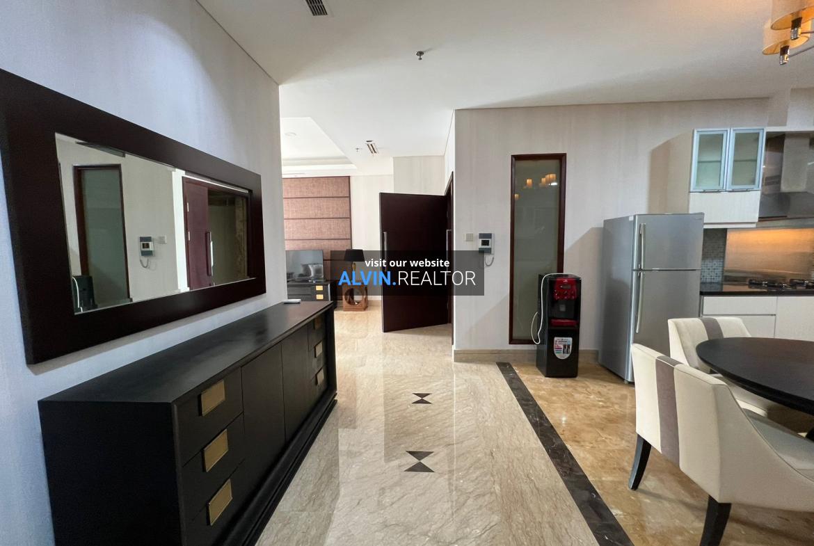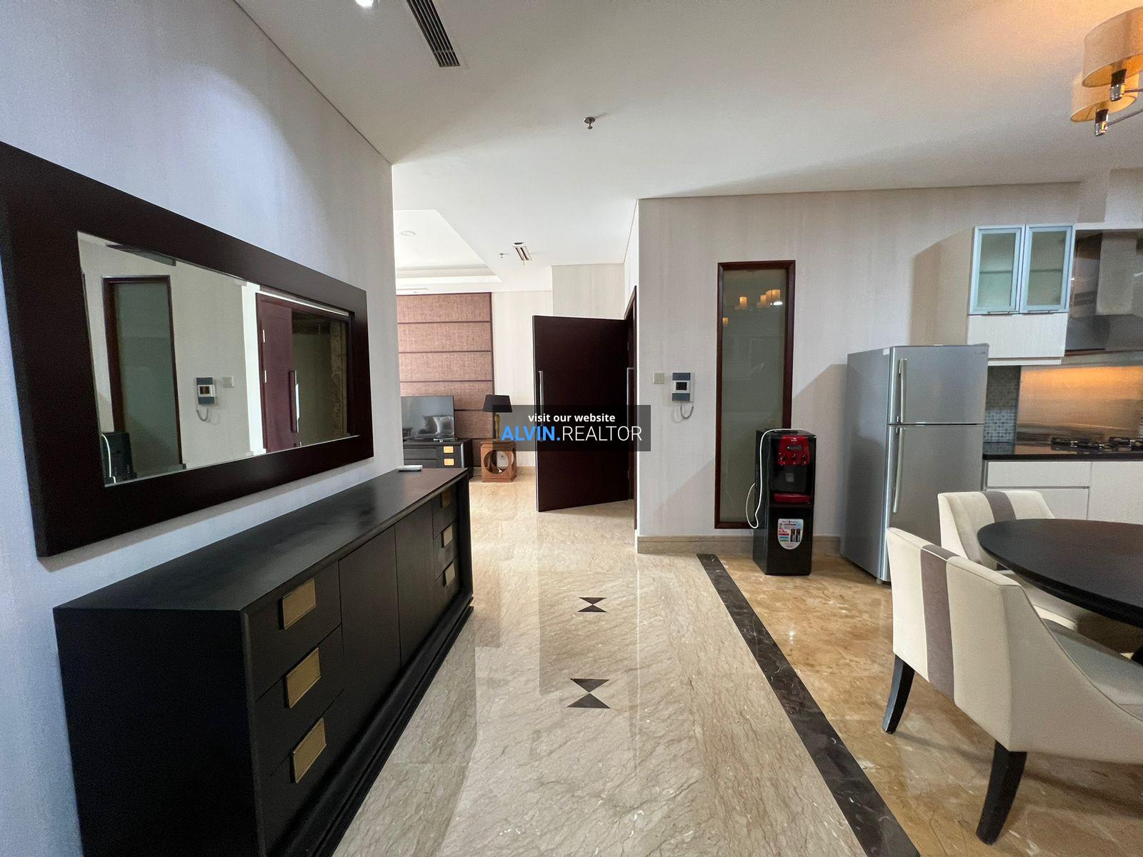 Dijual Apartemen Capital Residence Tower 2, luas 150 m2, terdiri dari 2 kamar tidur, 2 kamar mandi, maid room, kondisi fully furnished, posisi low floor.