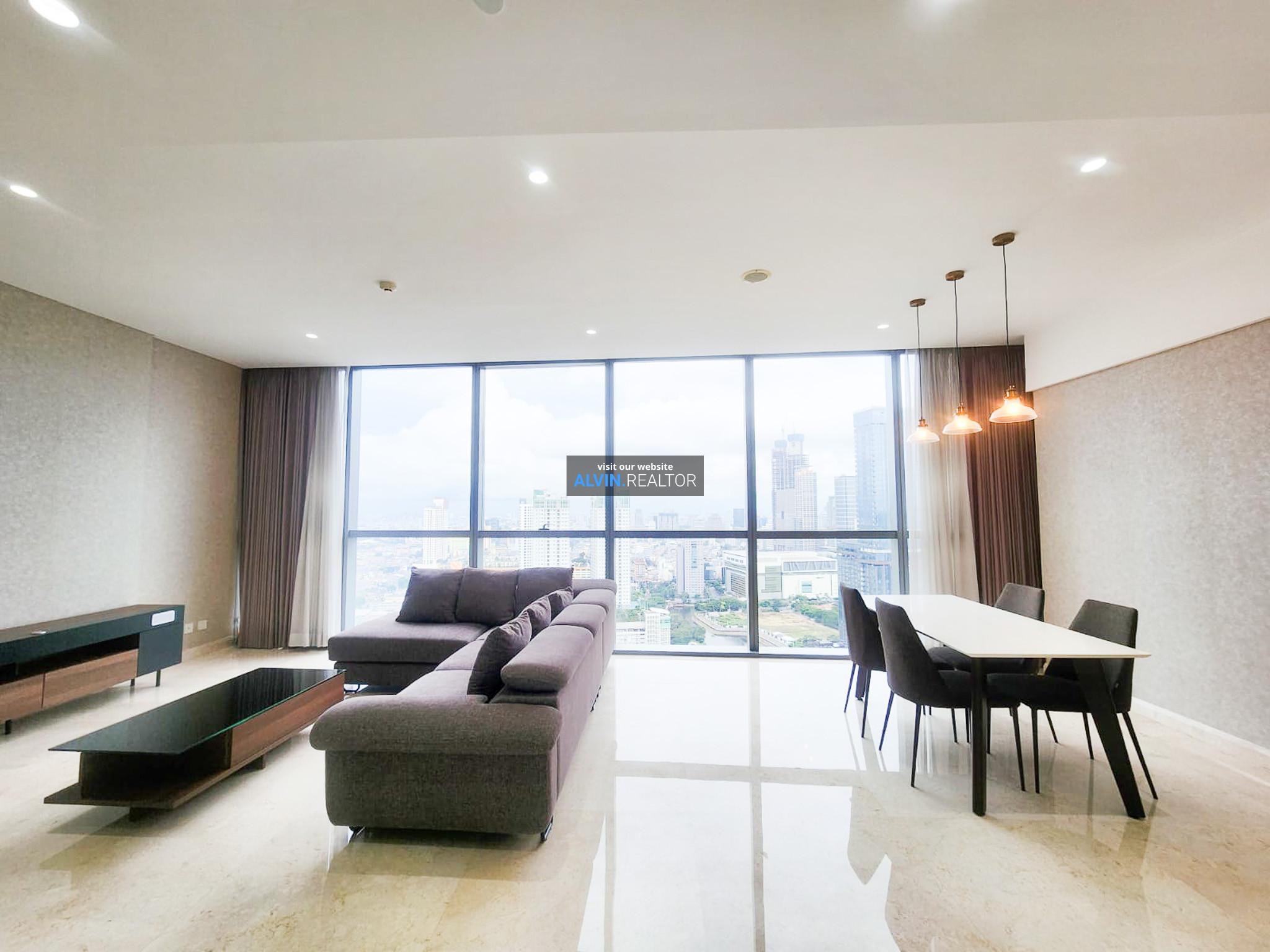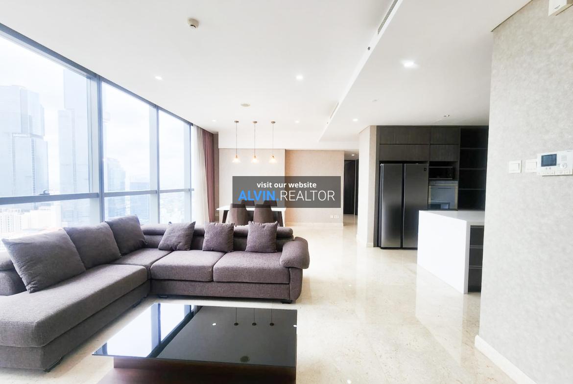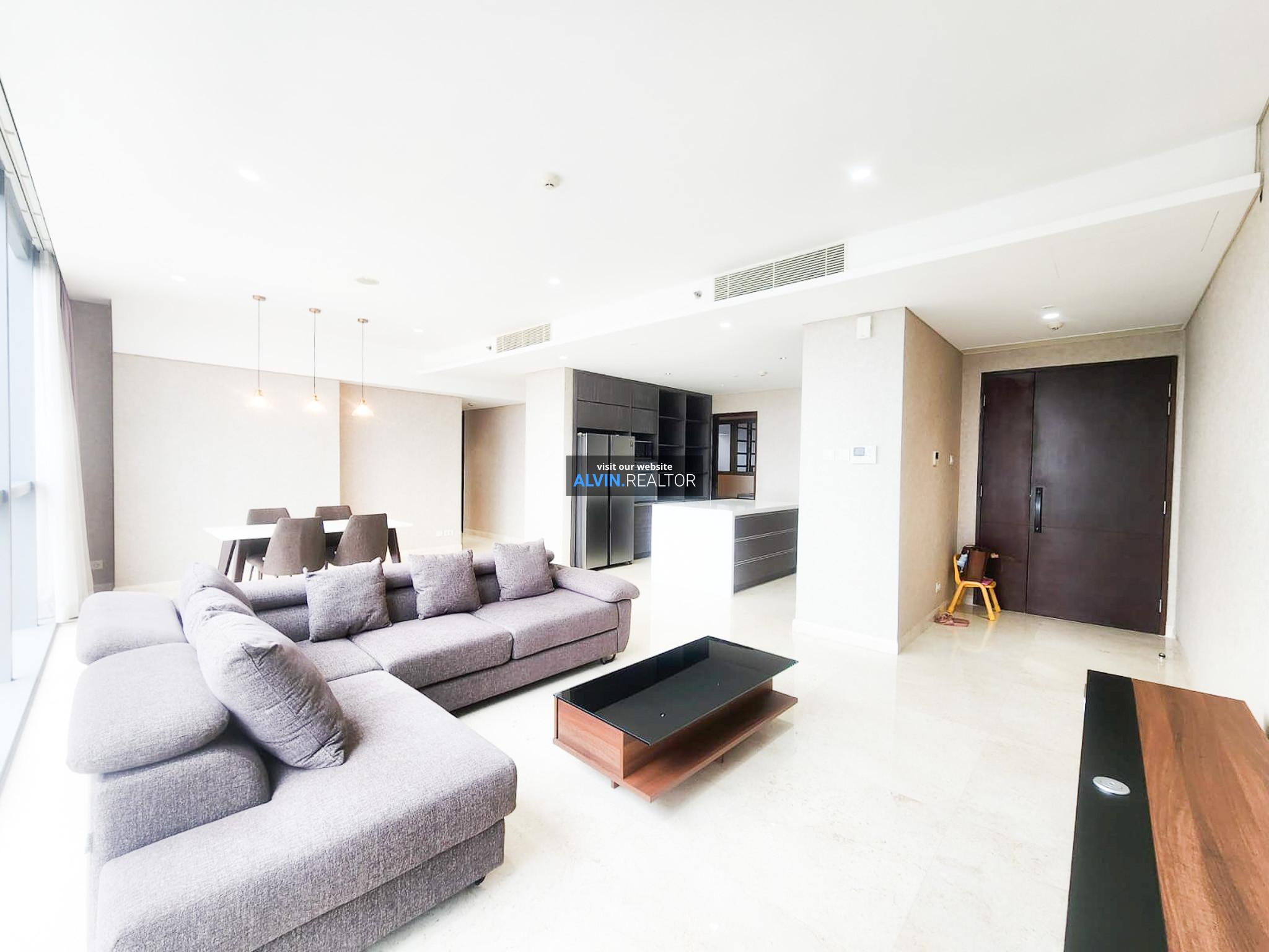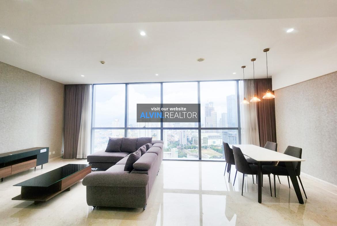 Disewa Apartemen Casa Domaine Tower 1, luas 169 m2, terdiri dari 3 kamar tidur, 3 kamar mandi, maid room, kondisi fully furnished, posisi high floor.
