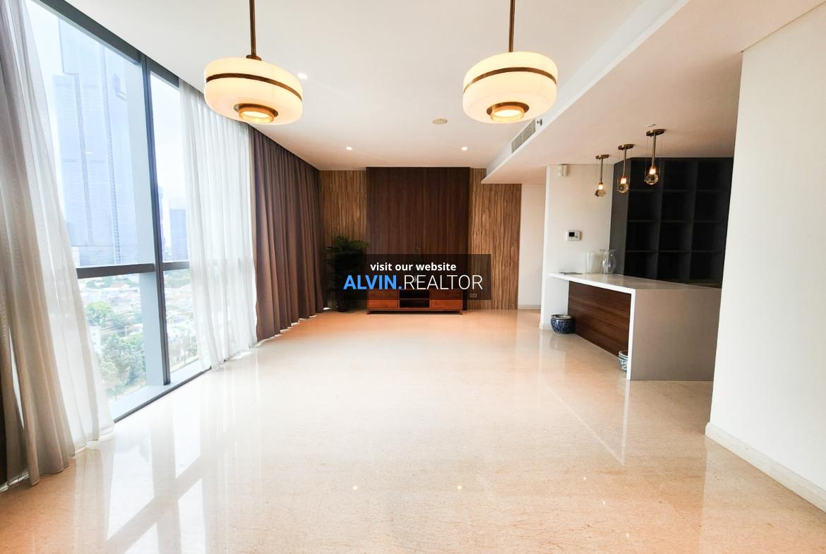 Disewa Apartemen Casa Domaine Tower 1, luas 169 m2, terdiri dari 3 kamar tidur, 3 kamar mandi, maid room, kondisi fully furnished, posisi middle floor.