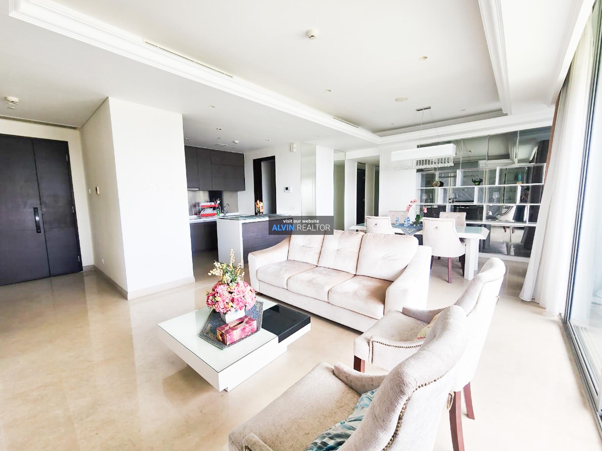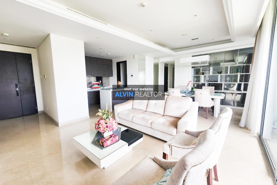Dijual Apartemen Casa Domaine Tower 2, luas 168 m2, terdiri dari 3 kamar tidur, 3 kamar mandi, maid room, kondisi fully furnished, posisi high floor.