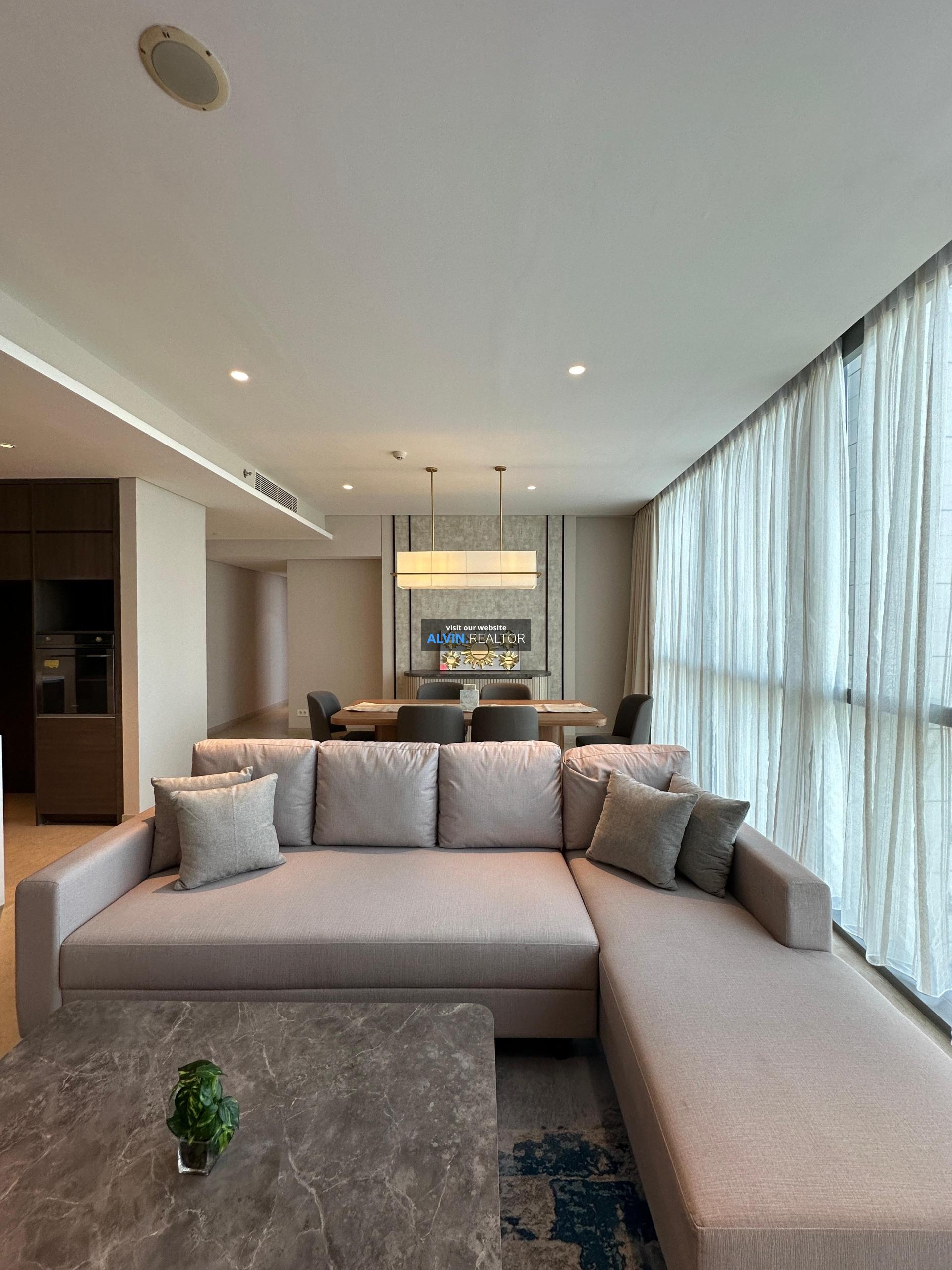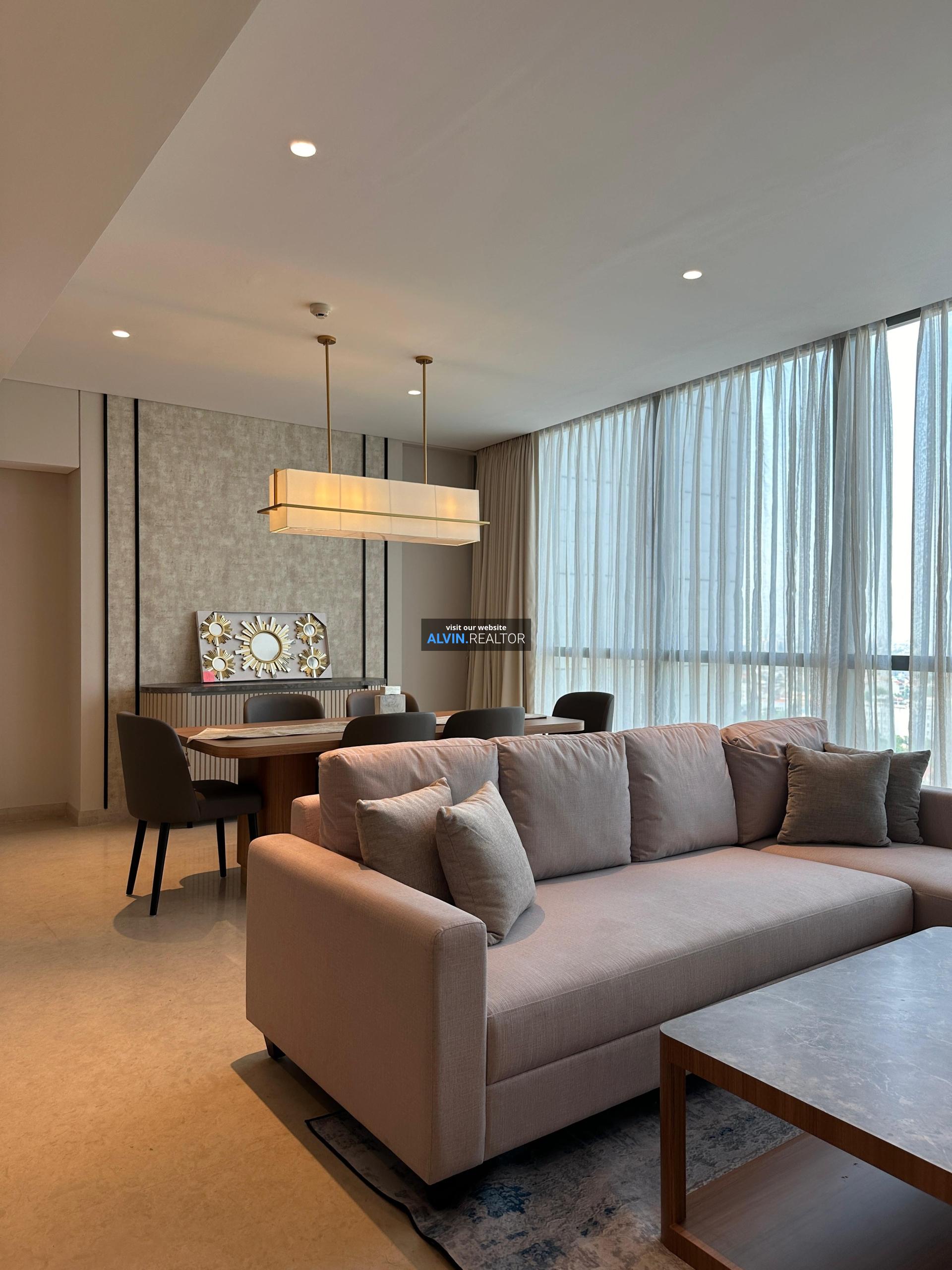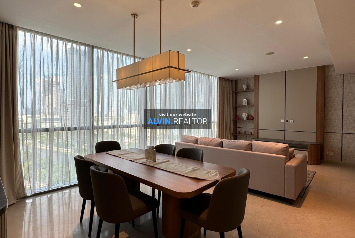 Disewa Apartemen Casa Domaine Tower 2, luas 148 m2, terdiri dari 2 kamar tidur, 2 kamar mandi, maid room, kondisi fully furnished, posisi middle floor.