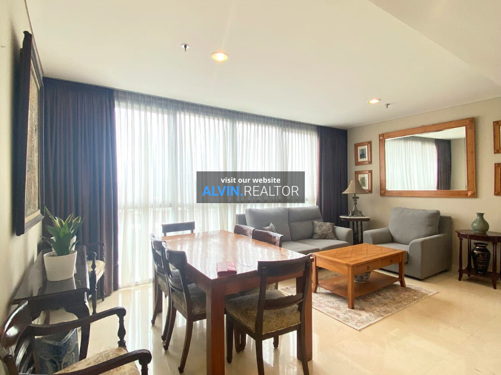 Disewa Apartemen Ciputra World 2 Tower Residence, luas 125 m2, terdiri dari 2 kamar tidur, 2 kamar mandi, maid room, study room, kondisi fully furnished, posisi low floor.