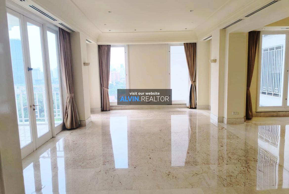 Dijual Apartemen Dharmawangsa Residences Tower 1, luas 320 m2, terdiri dari 3 kamar tidur, 3 kamar mandi, maid room, kondisi unfurnished, posisi middle floor.