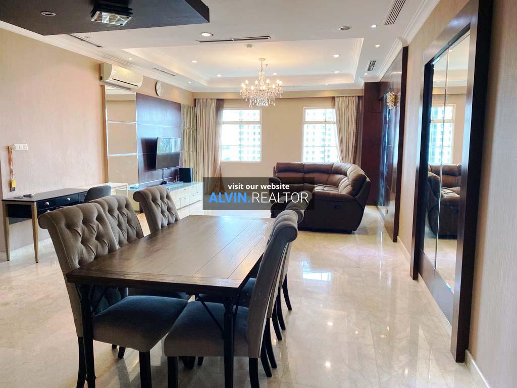 Dijual Apartemen Belleza, terdiri dari 3 kamar tidur dan 2 kamar mandi. Luas unit ini 140 m2 dengan kondisi fully furnished. Unit berada dilantai rendah.