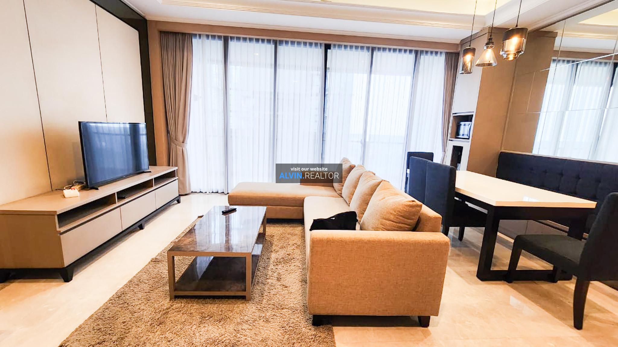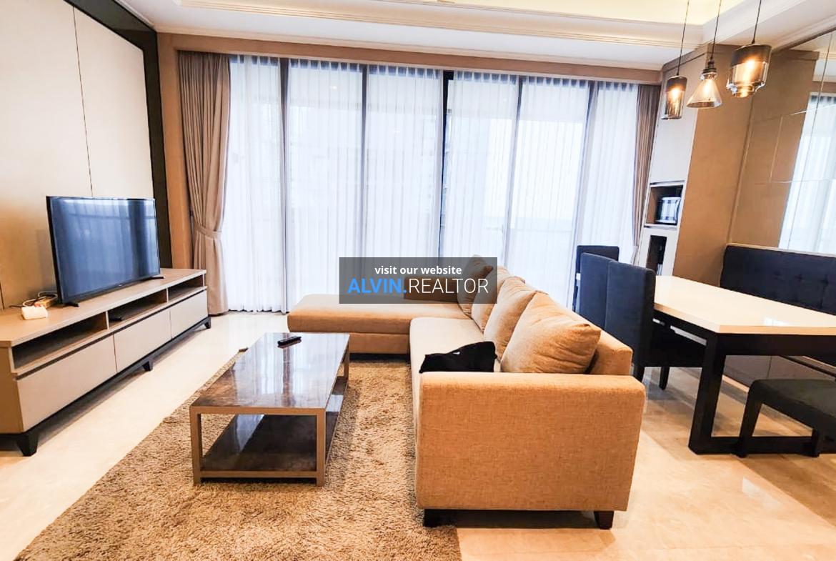 Dijual Apartemen District 8 SCBD Tower Infinity, luas 153 m2, terdiri dari 2 kamar tidur, 2 kamar mandi, maid room, kondisi fully furnished, posisi high floor.