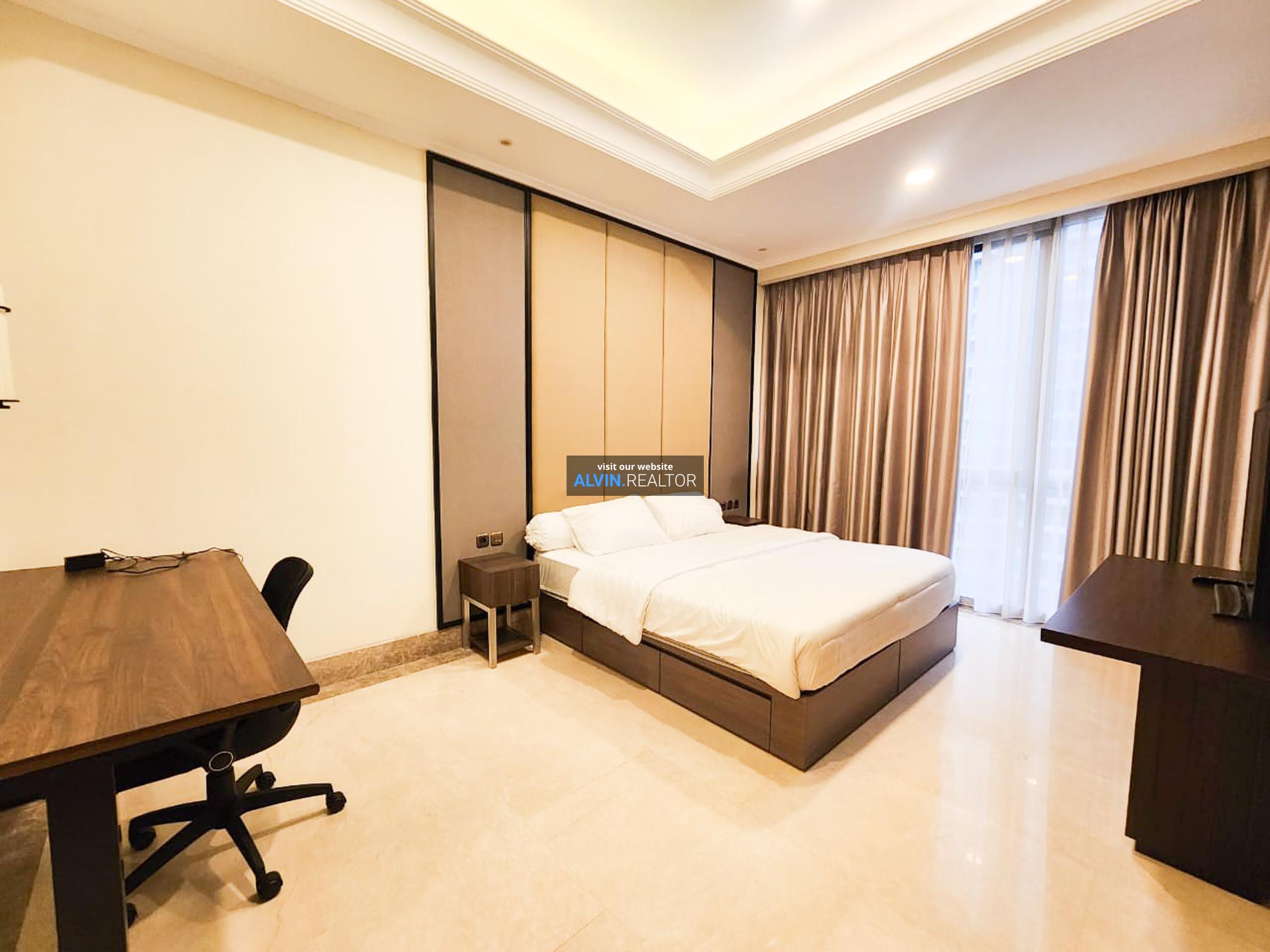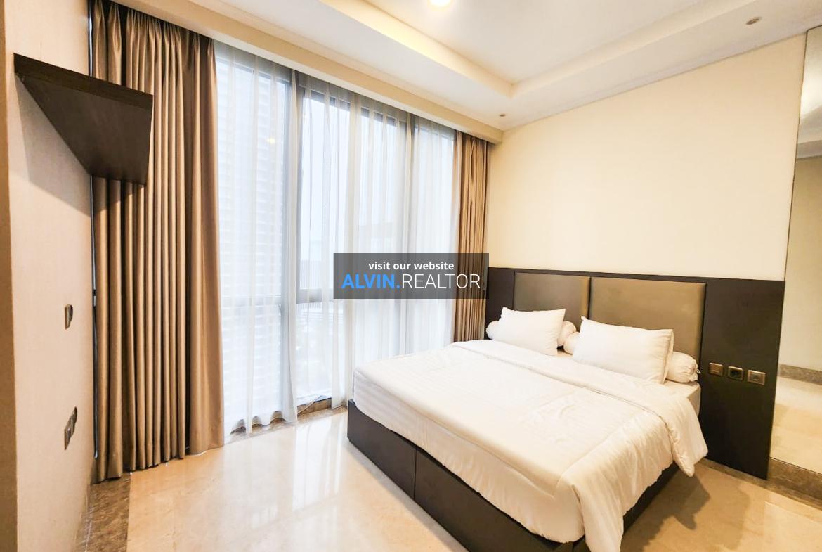 Disewa Apartemen District 8 SCBD Tower Infinity, luas 105 m2, terdiri dari 2 kamar tidur, 2 kamar mandi, maid room, kondisi fully furnished, posisi high floor.