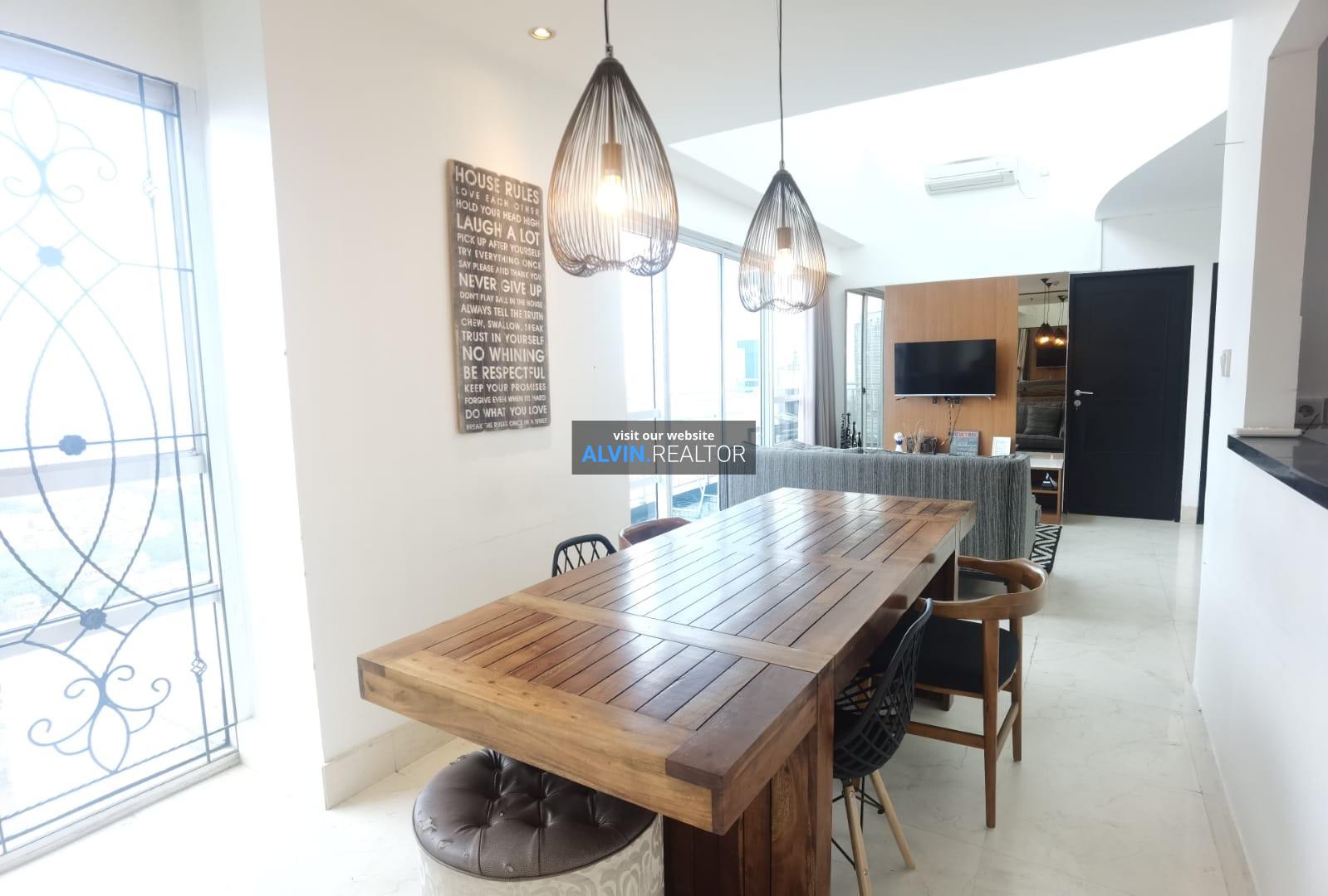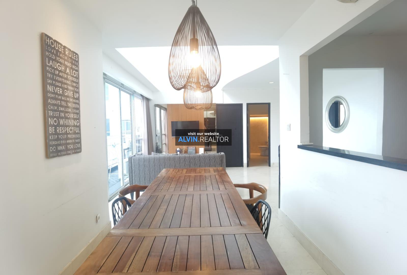 Disewa Apartemen The Essence Dharmawangsa Tower Eminence, luas 164 m2, terdiri dari 3 kamar tidur, 3 kamar mandi, maid room, study room, kondisi fully furnished, posisi high floor.