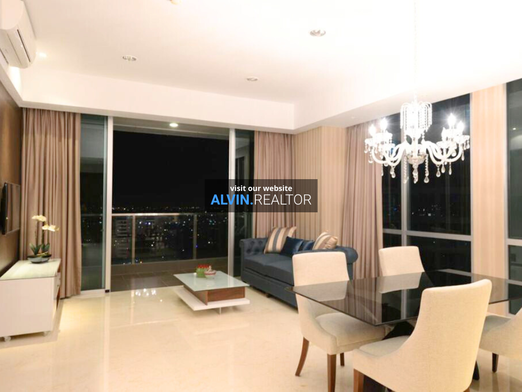 Dijual Apartemen Kemang Village Tower Tiffany, luas 173 m2, terdiri dari 2 kamar tidur, 2 kamar mandi, maid room, kondisi fully furnished, posisi high floor.