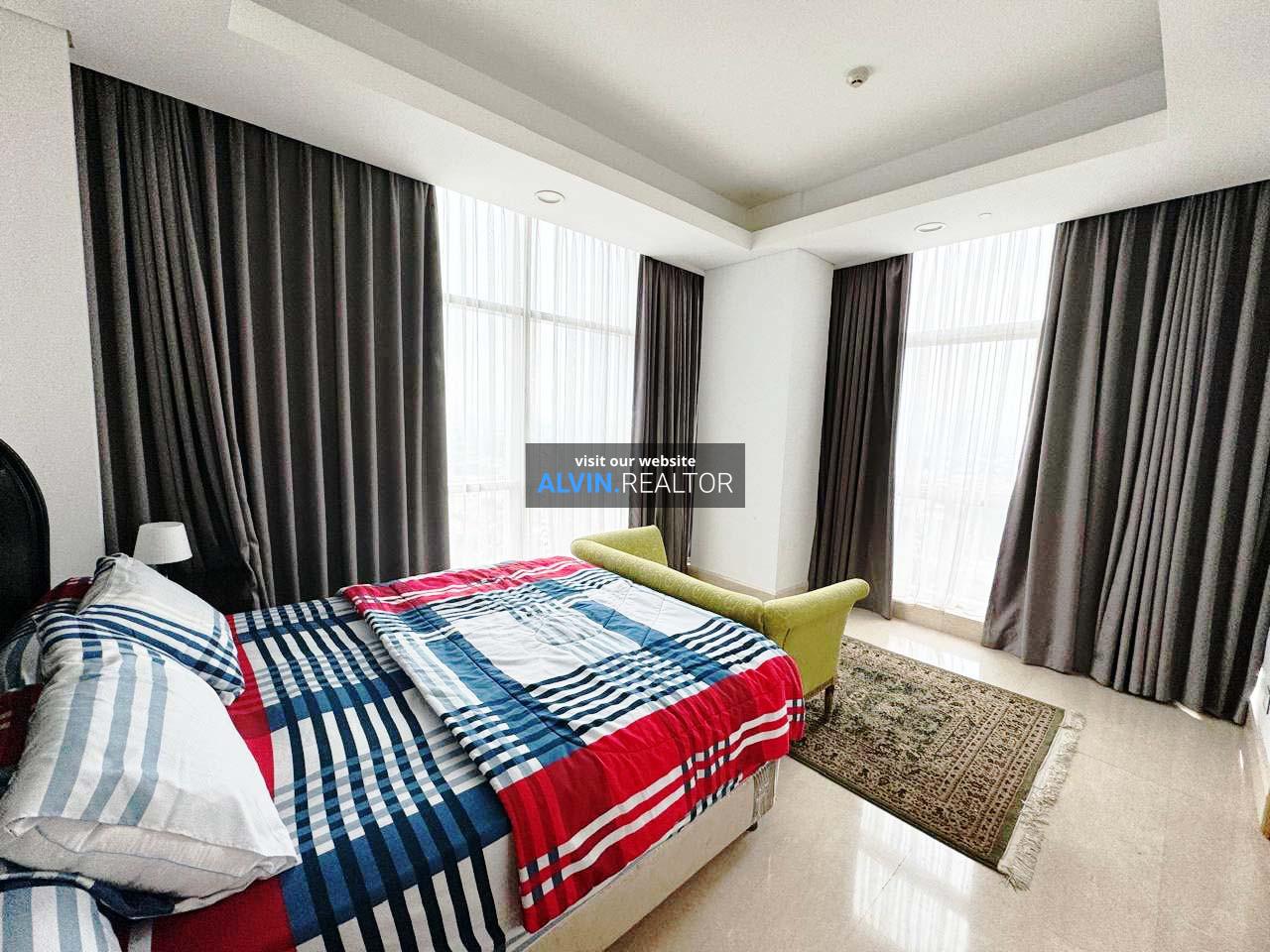Disewa Apartemen La Maison, luas 169 m2, terdiri dari 3 kamar tidur, 2 kamar mandi, maid room, kondisi fully furnished, posisi middle floor.