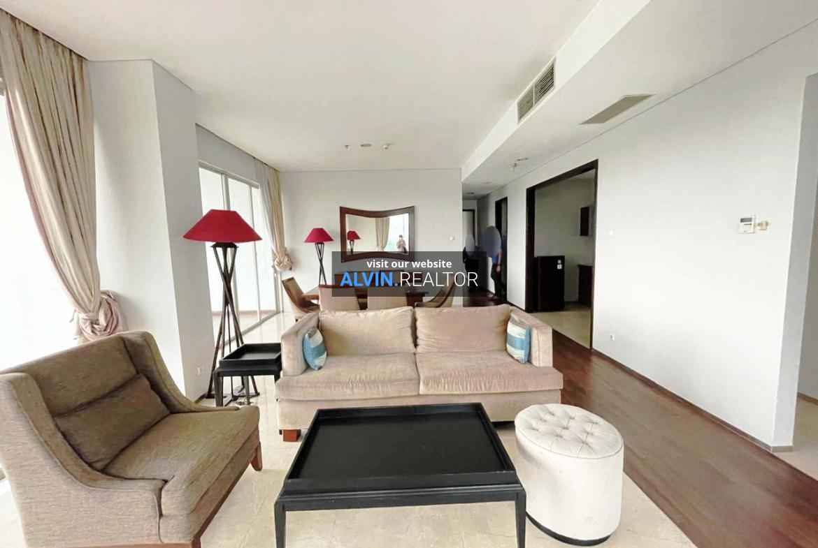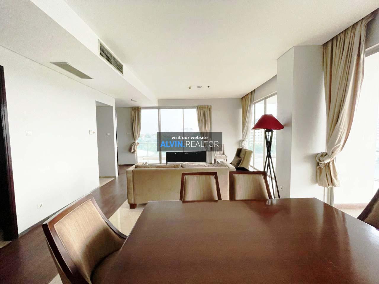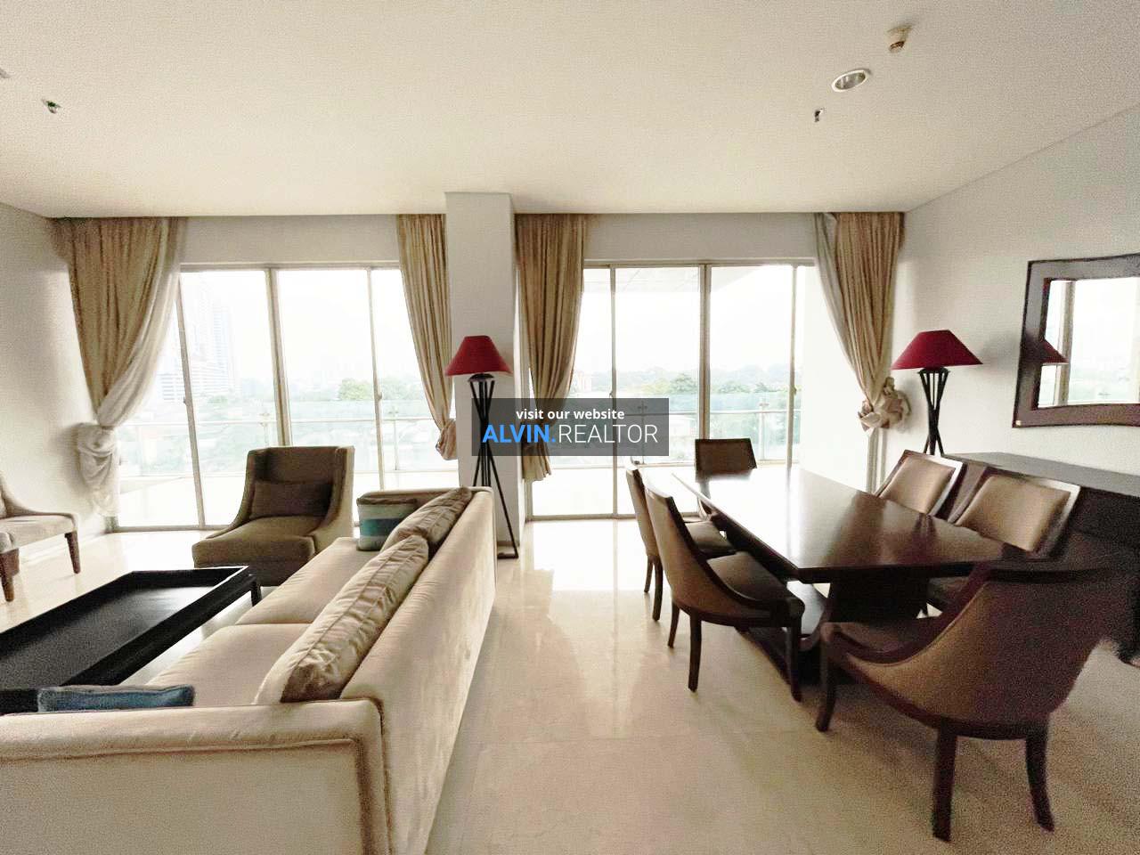 Disewa Apartemen Nirvana Kemang, luas 303 m2, terdiri dari 3 kamar tidur, 4 kamar mandi, maid room, study room, kondisi fully furnished, posisi low floor.