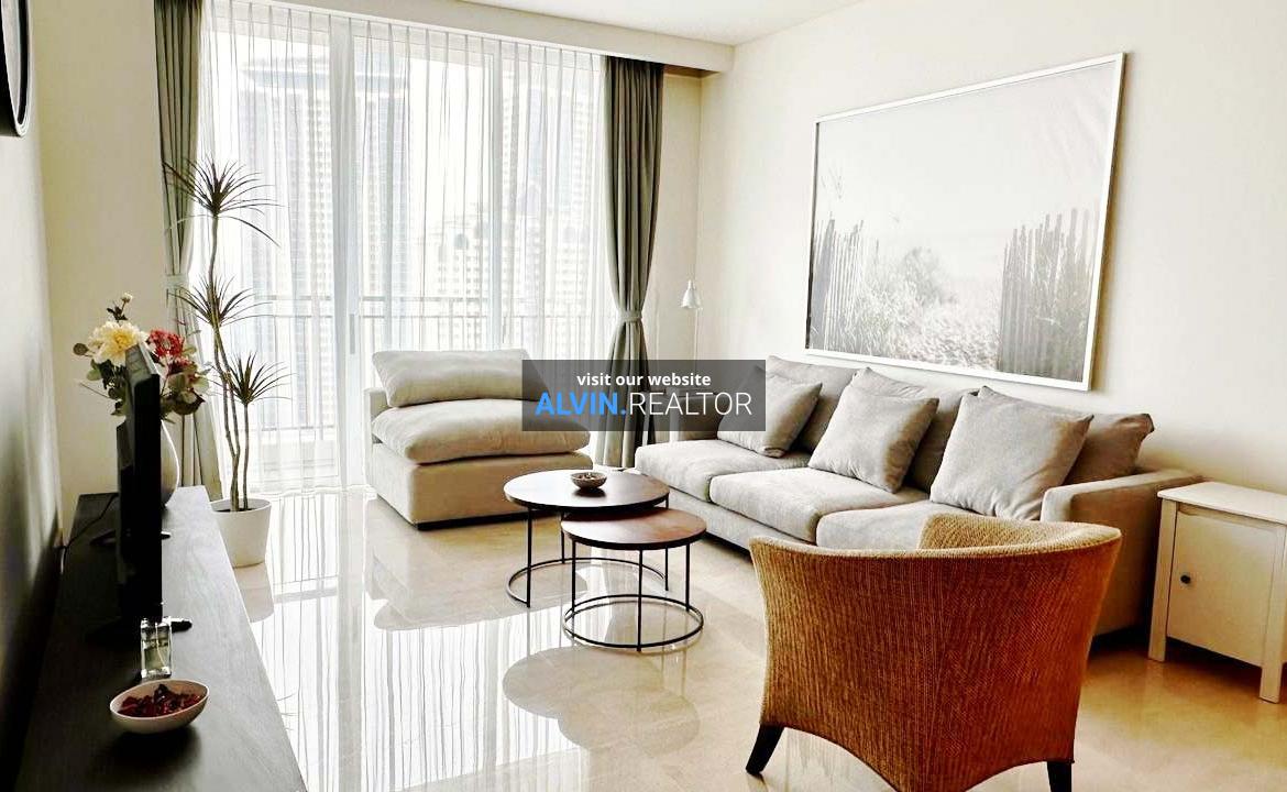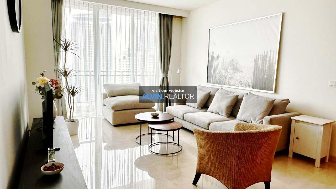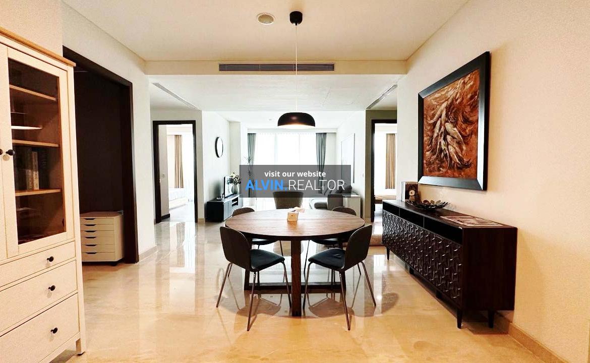Disewa Apartemen Pakubuwono House Tower Rosewood, luas 175 m2, terdiri dari 2 kamar tidur, 2 kamar mandi, maid room, study room, kondisi fully furnished, posisi high floor.