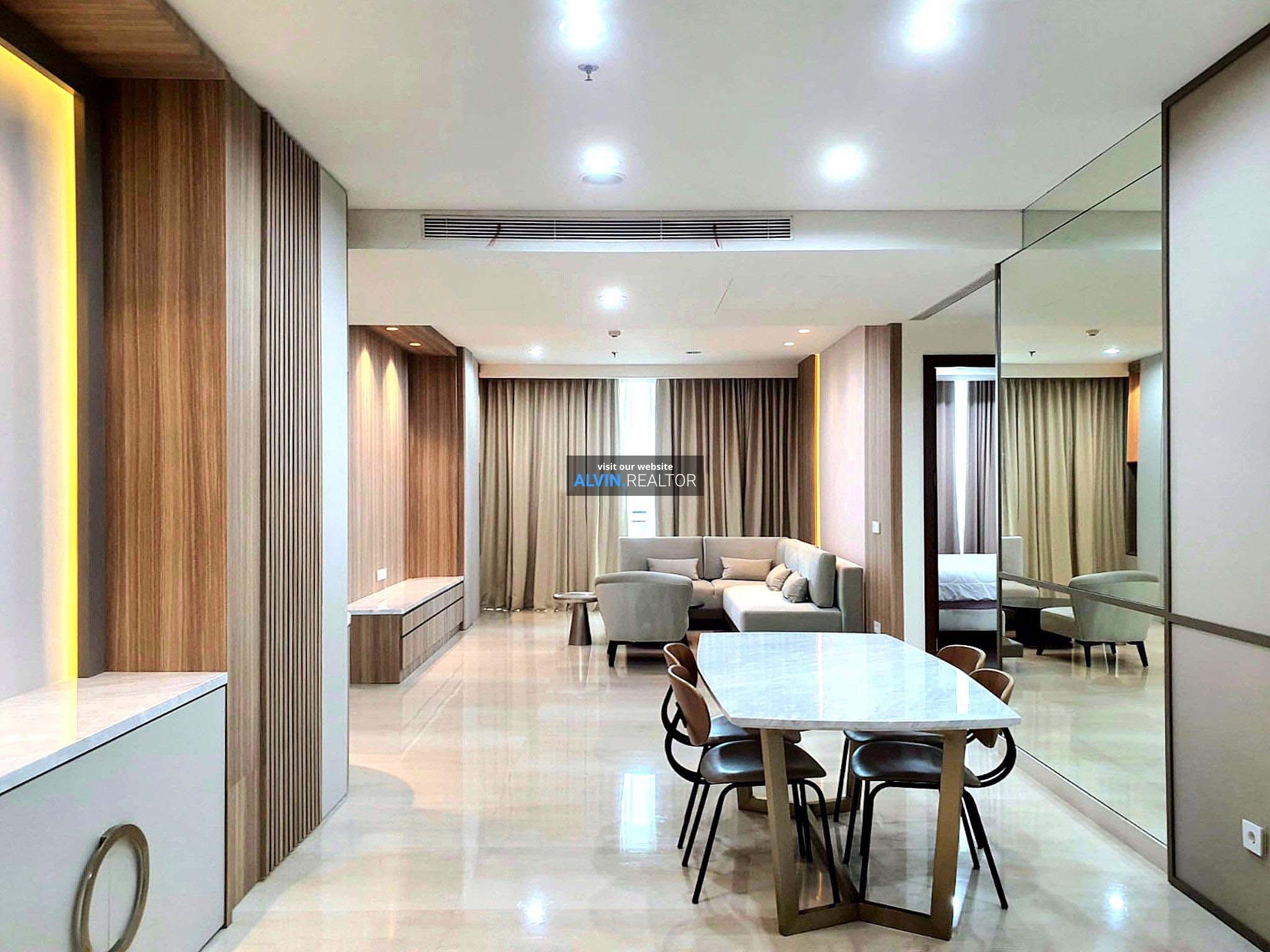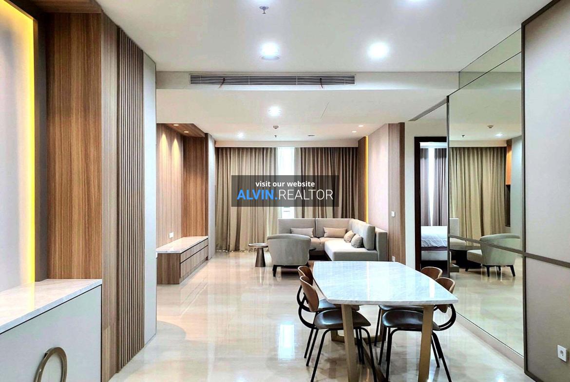 Disewa Apartemen Pakubuwono House Tower Rosewood, luas 175 m2, terdiri dari 2 kamar tidur, 2 kamar mandi, maid room, study room, kondisi fully furnished, posisi high floor.