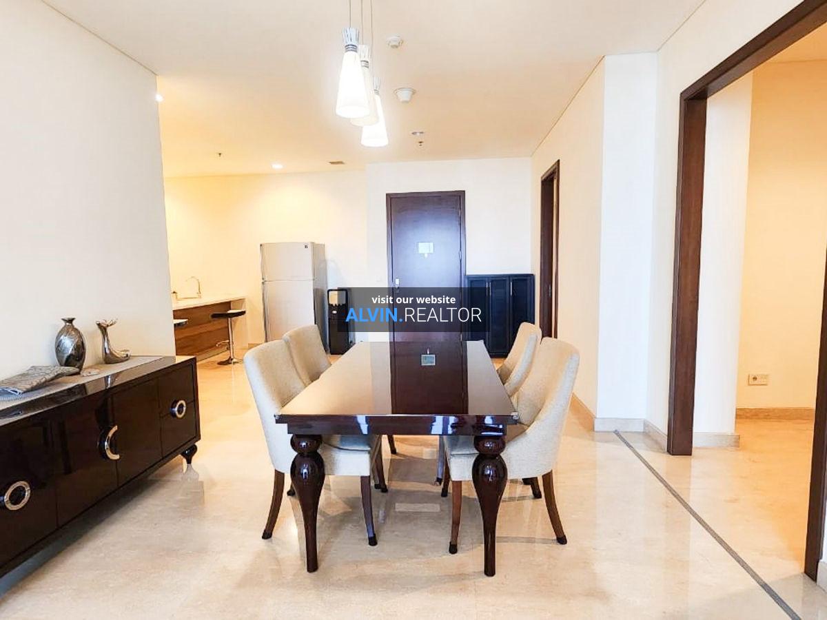 Dijual Apartemen Pakubuwono House Tower Rosewood, luas 175 m2, terdiri dari 2 kamar tidur, 2 kamar mandi, maid room, kondisi fully furnished, posisi middle floor.