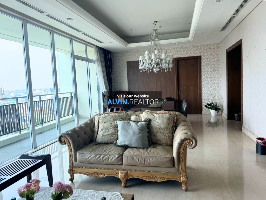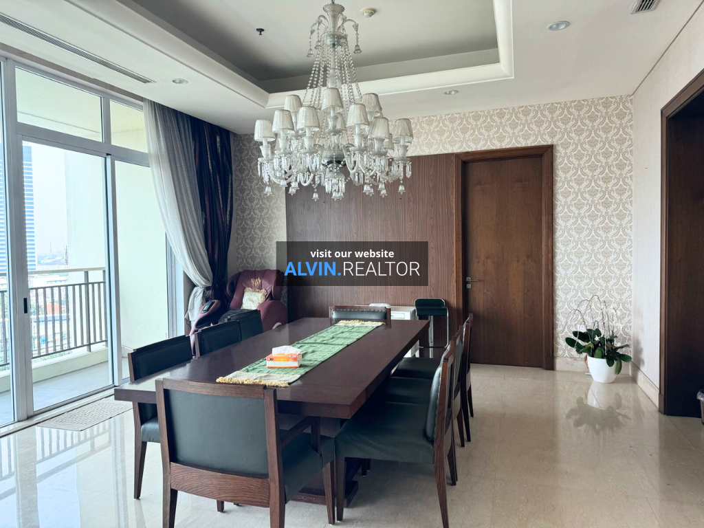 Dijual Apartemen Pakubuwono Signature Tower Satinwood, luas 385 m2, terdiri dari 4 kamar tidur, 4 kamar mandi, maid room, study room, kondisi fully furnished, posisi low floor.
