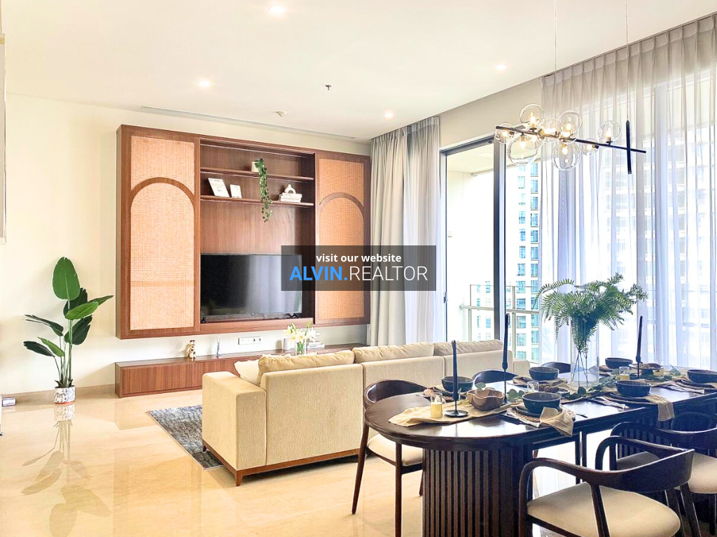 Dijual Apartemen Pakubuwono Spring Tower Cherrywood, luas 170 m2, terdiri dari 2 kamar tidur, 2 kamar mandi, maid room, kondisi fully furnished, posisi high floor.