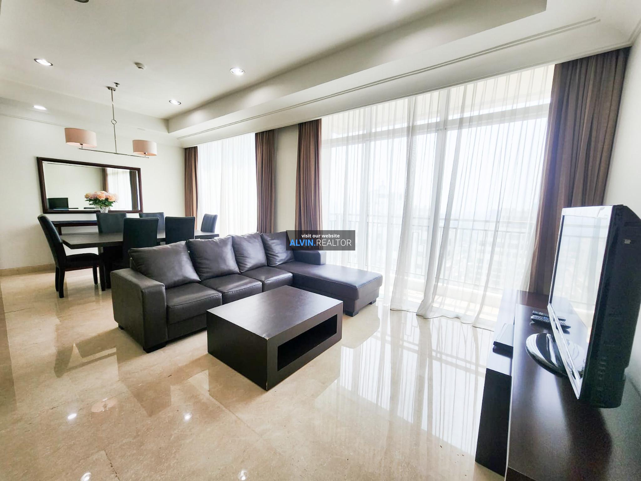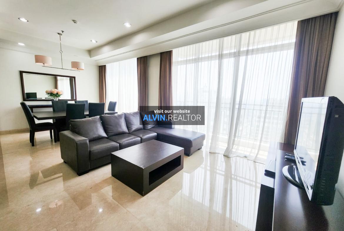 Disewa Apartemen Pakubuwono View Tower Lacewood, luas 196 m2, terdiri dari 3 kamar tidur, 2 kamar mandi, maid room, kondisi fully furnished, posisi high floor.