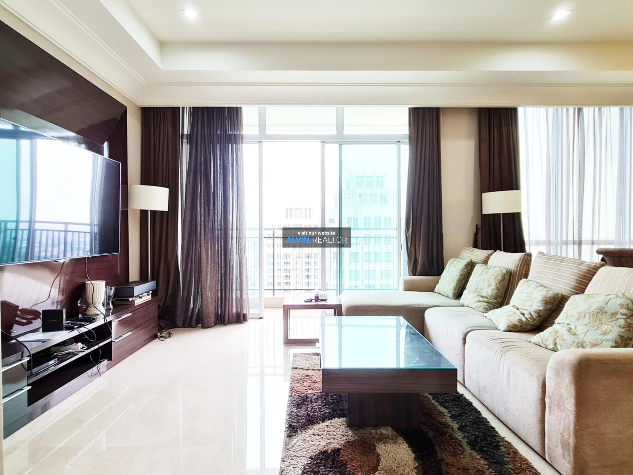 Disewa Apartemen Pakubuwono View Tower Lacewood, luas 196 m2, terdiri dari 3 kamar tidur, 2 kamar mandi, maid room, kondisi fully furnished, posisi high floor.
