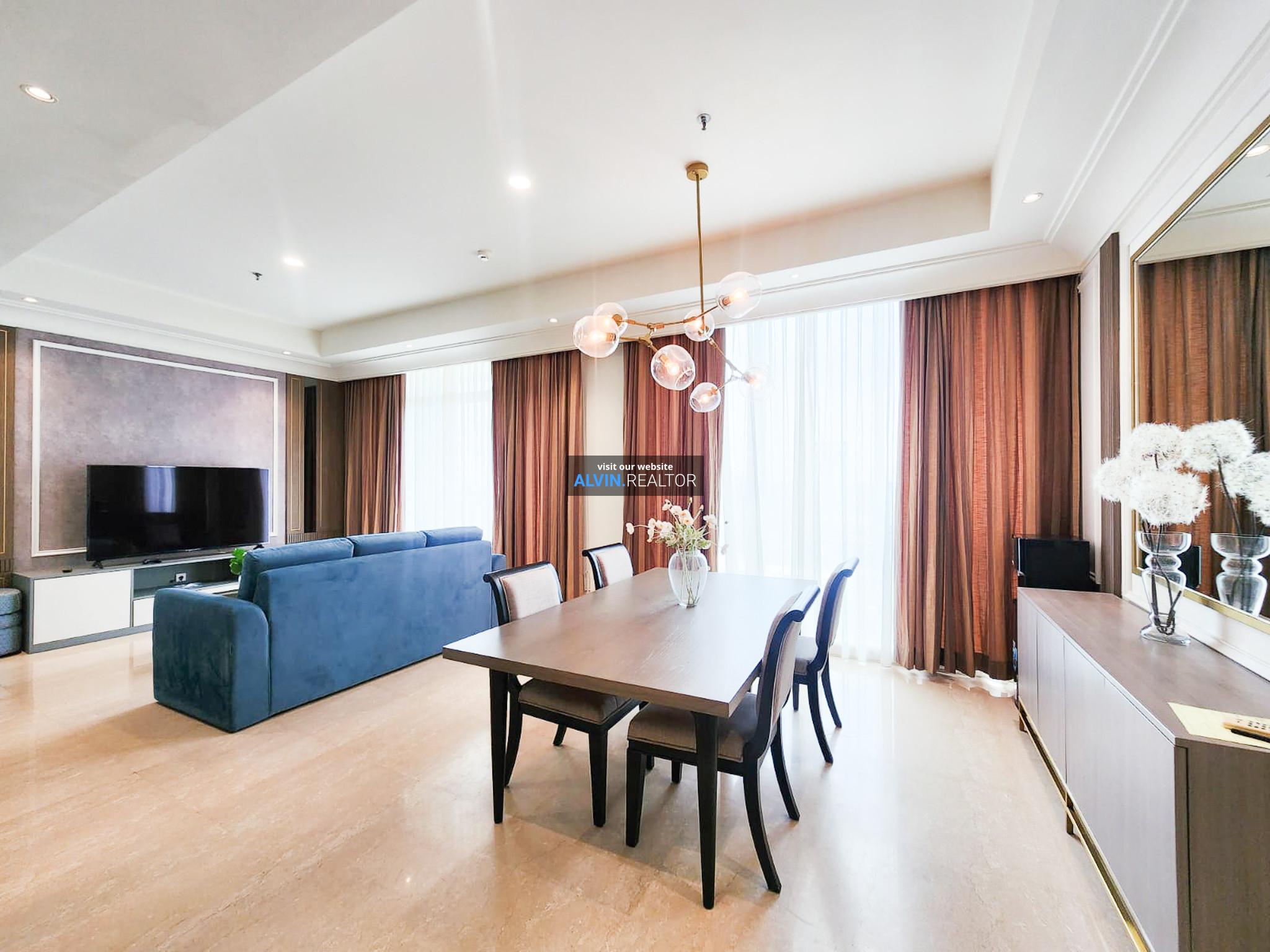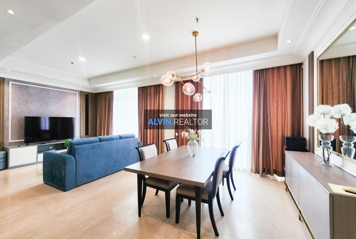 Dijual Apartemen Pakubuwono View Tower Redwood, luas 153 m2, terdiri dari 2 kamar tidur, 2 kamar mandi, maid room, kondisi fully furnished, posisi middle floor.