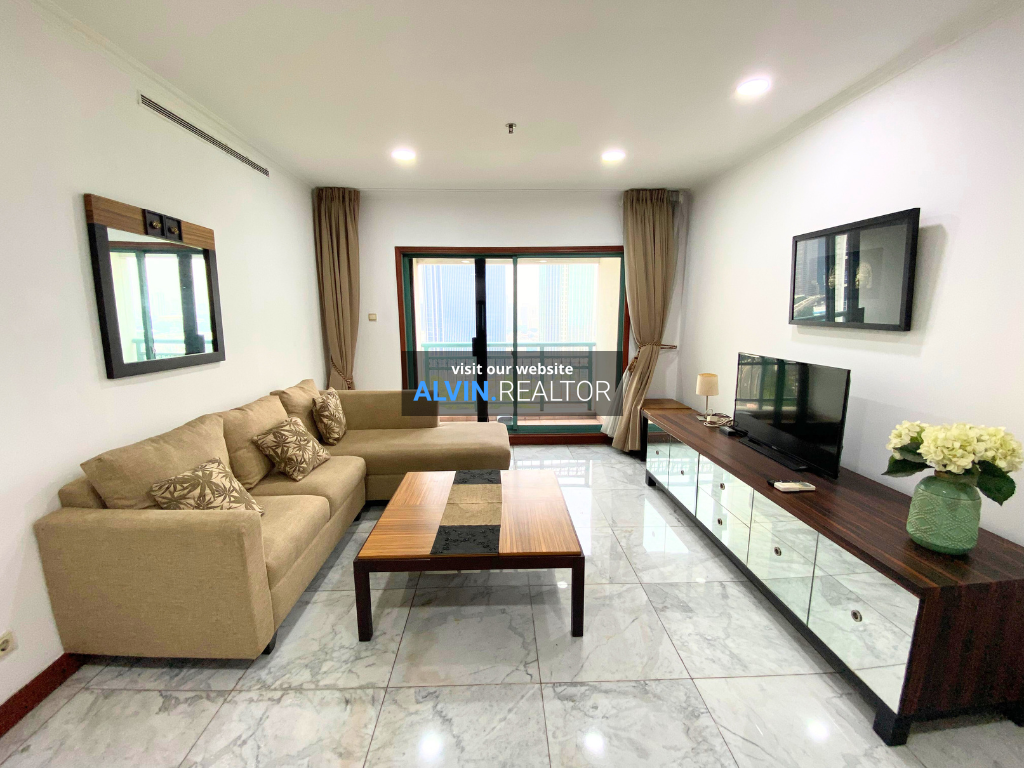Disewa Apartemen Pavilion Tower 2, luas 112 m2, terdiri dari 2 kamar tidur, 2 kamar mandi, maid room, kondisi fully furnished, posisi middle floor.