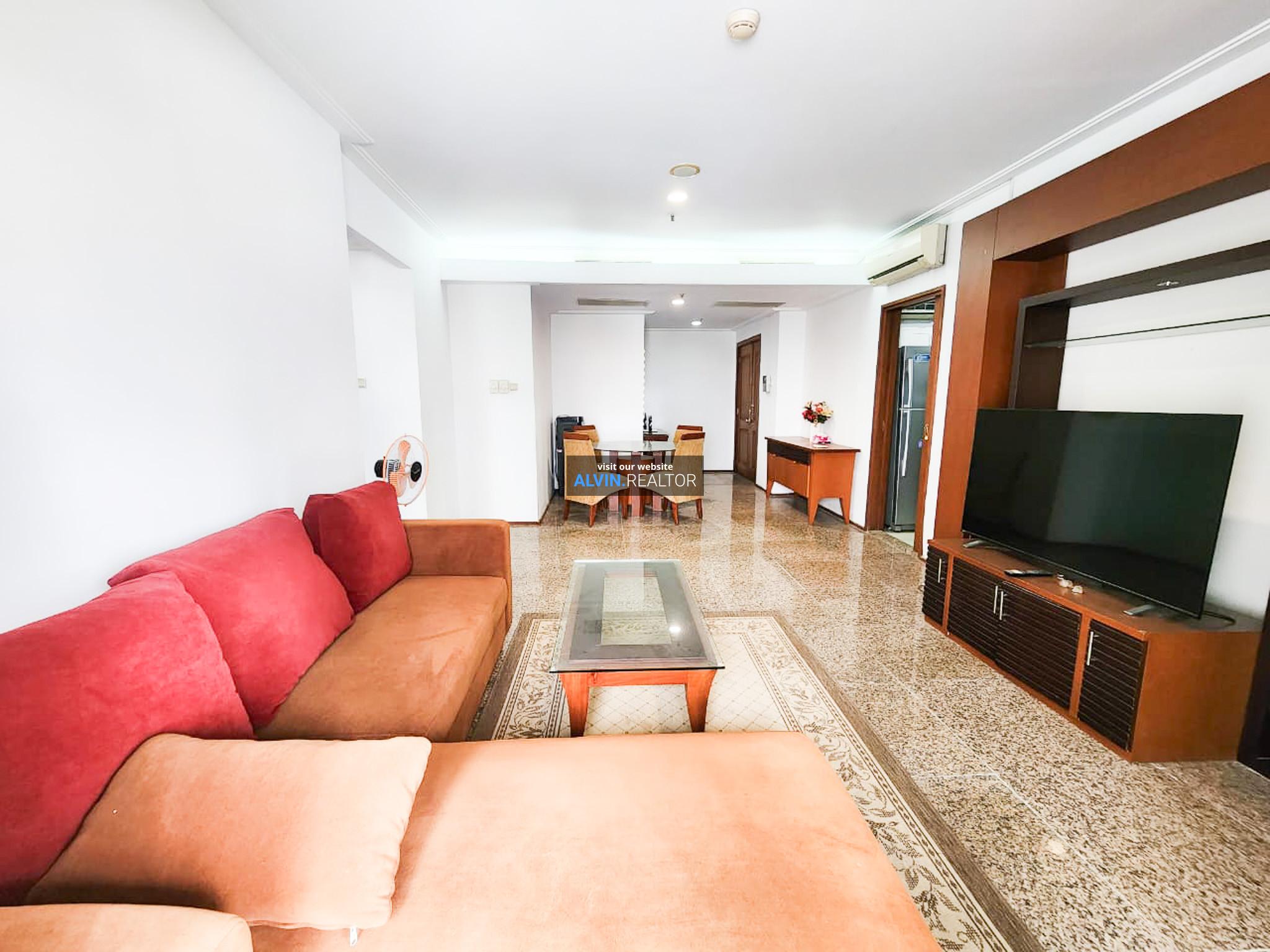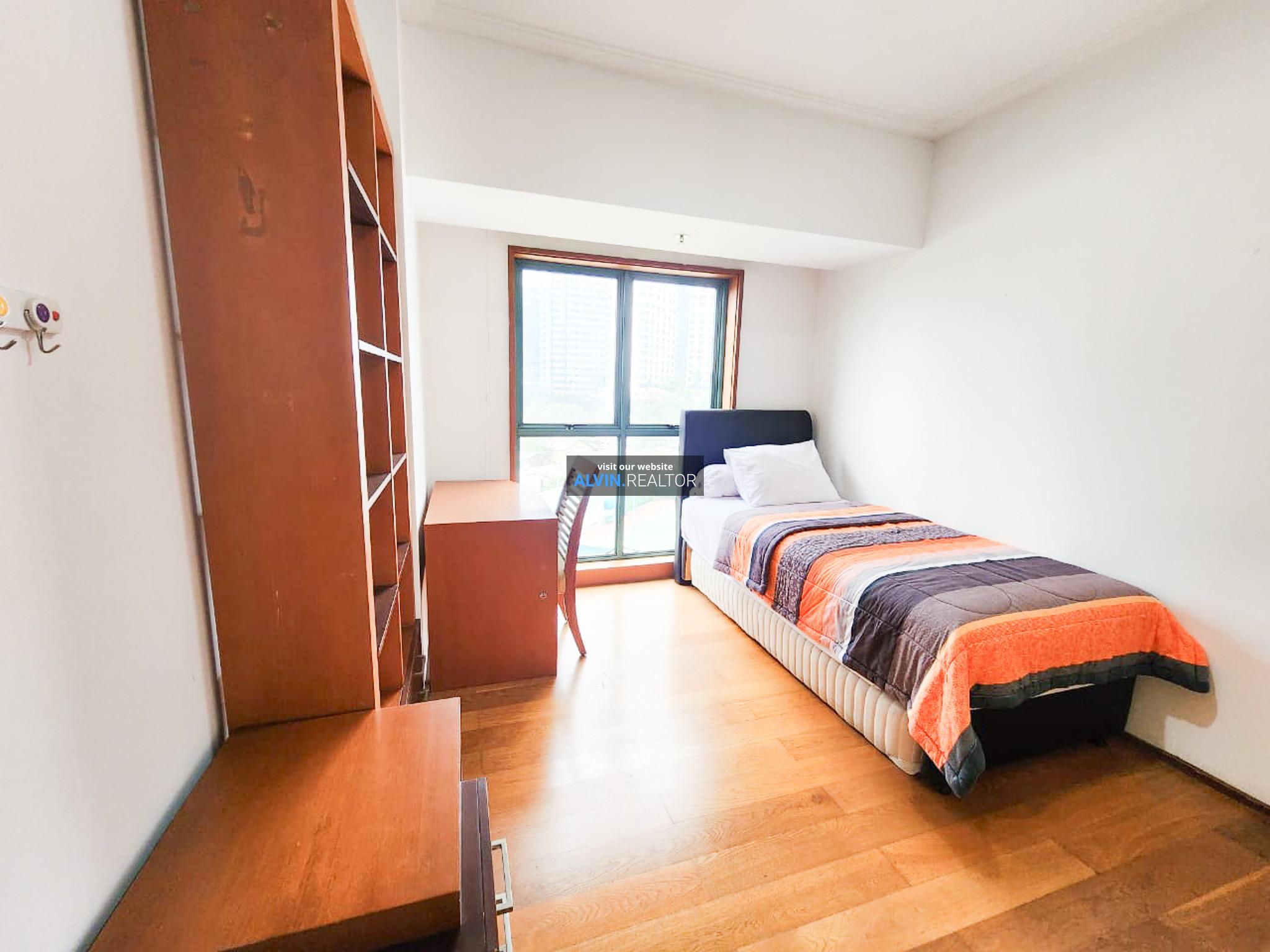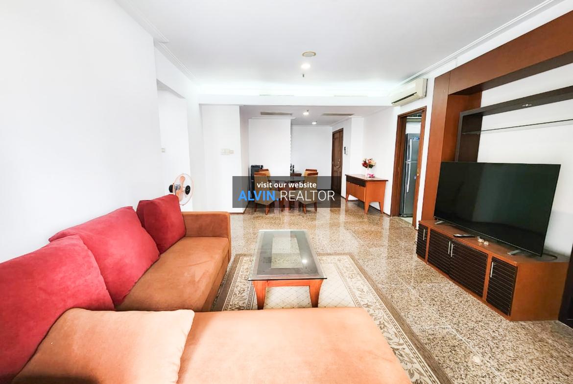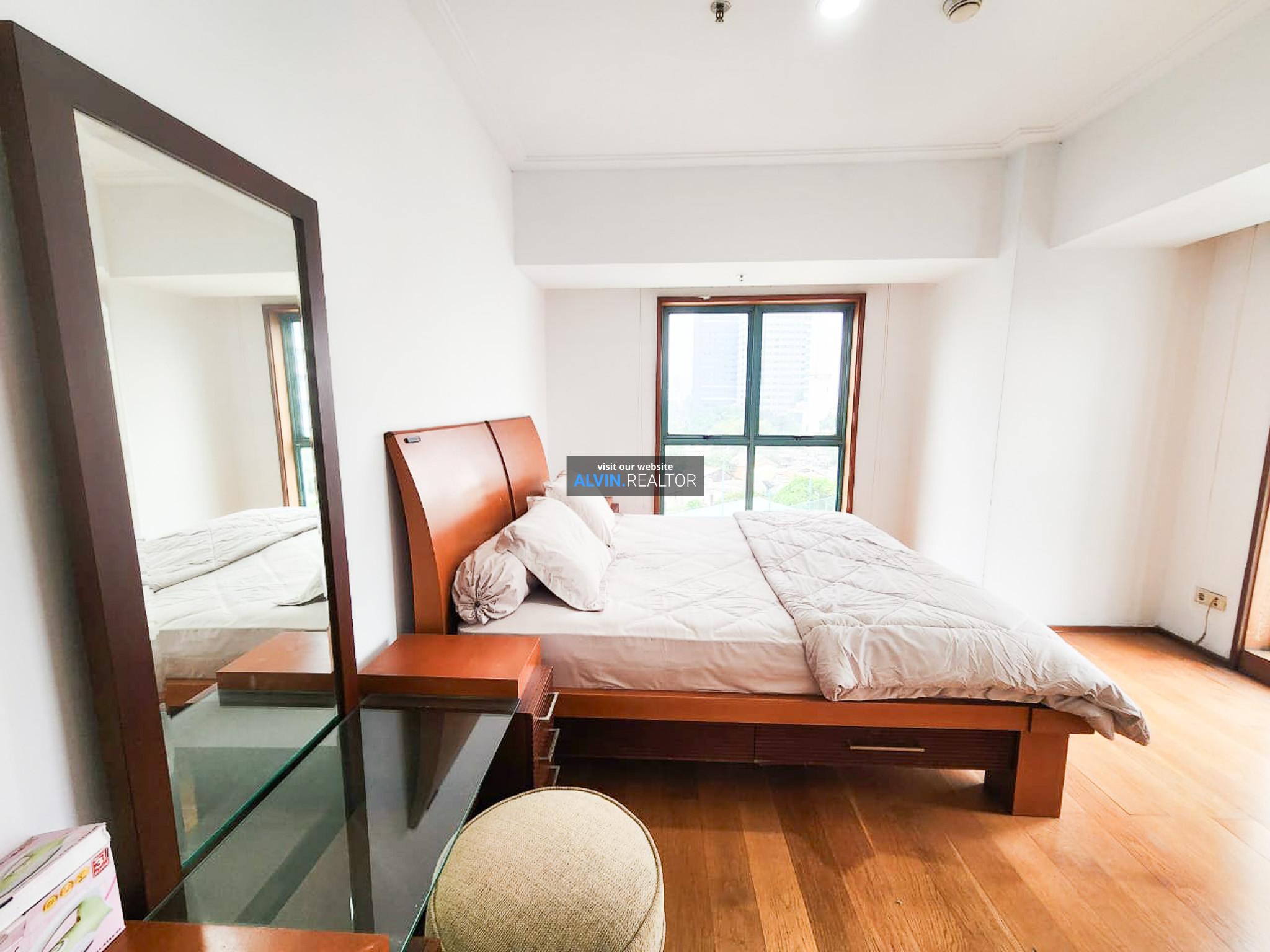 Disewa Apartemen Pavilion Tower 3, luas 115 m2, terdiri dari 2 kamar tidur, 2 kamar mandi, maid room, kondisi fully furnished, posisi low floor.