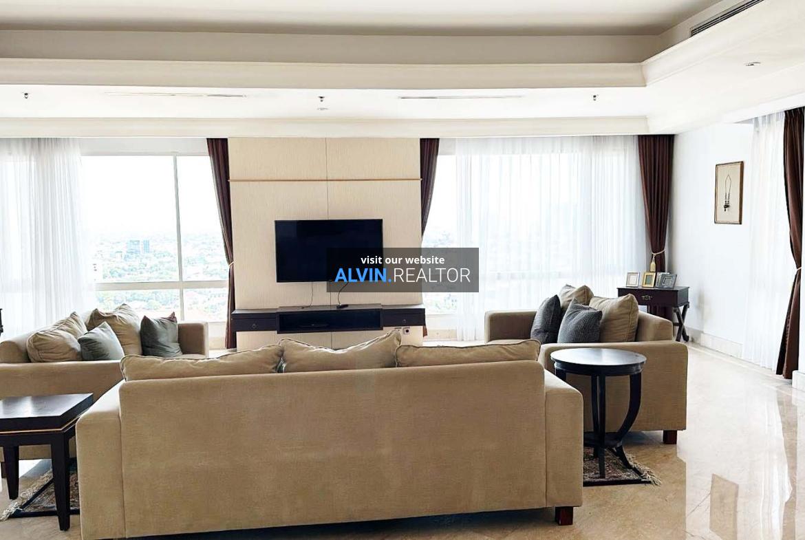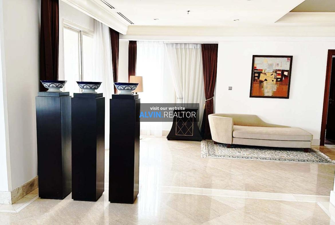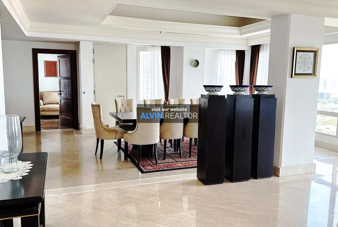 Dijual Apartemen SCBD Suites, luas 360 m2, terdiri dari 3 kamar tidur, 3 kamar mandi, maid room, kondisi fully furnished, posisi high floor.