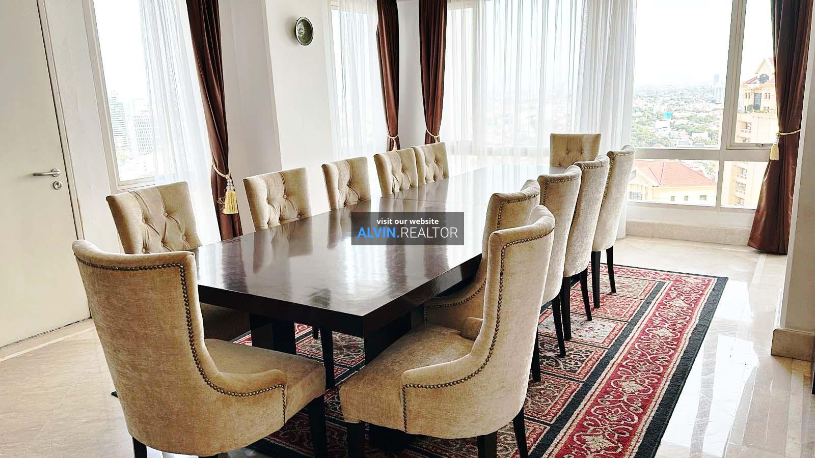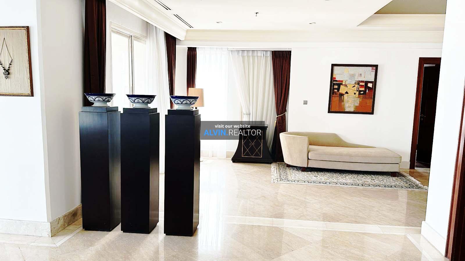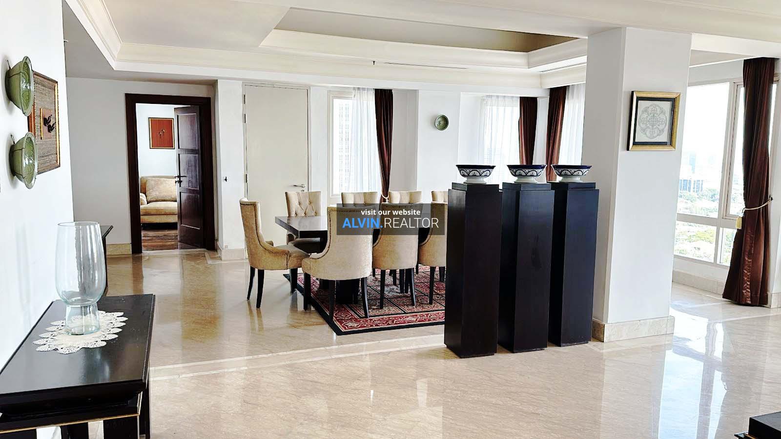 Dijual Apartemen SCBD Suites, luas 360 m2, terdiri dari 3 kamar tidur, 3 kamar mandi, maid room, kondisi fully furnished, posisi high floor.