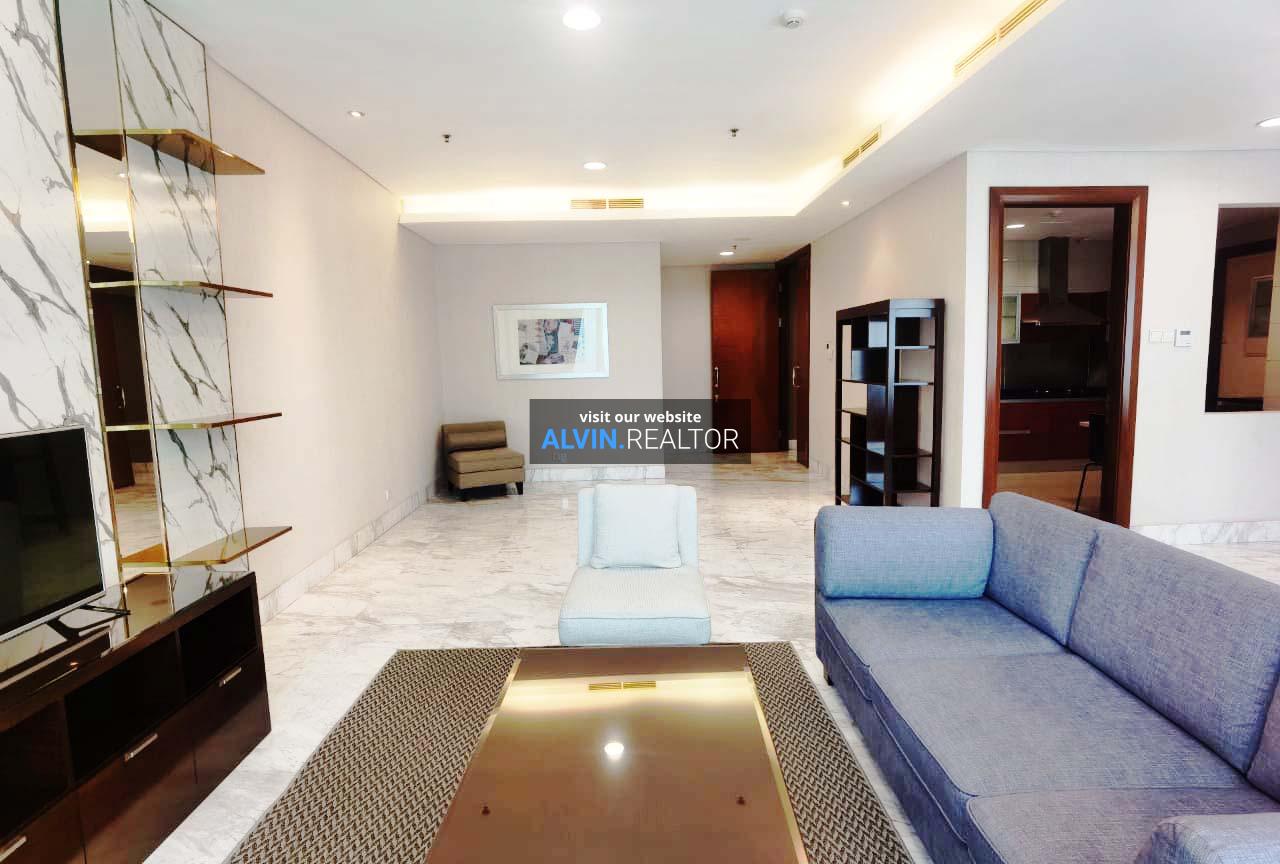 For Rent! Senayan City Residence, Low Floor. Area 235 sqm. Unit with 2 bedrooms, 1 study room, 3 bathrooms and maid area. Fully furnished.