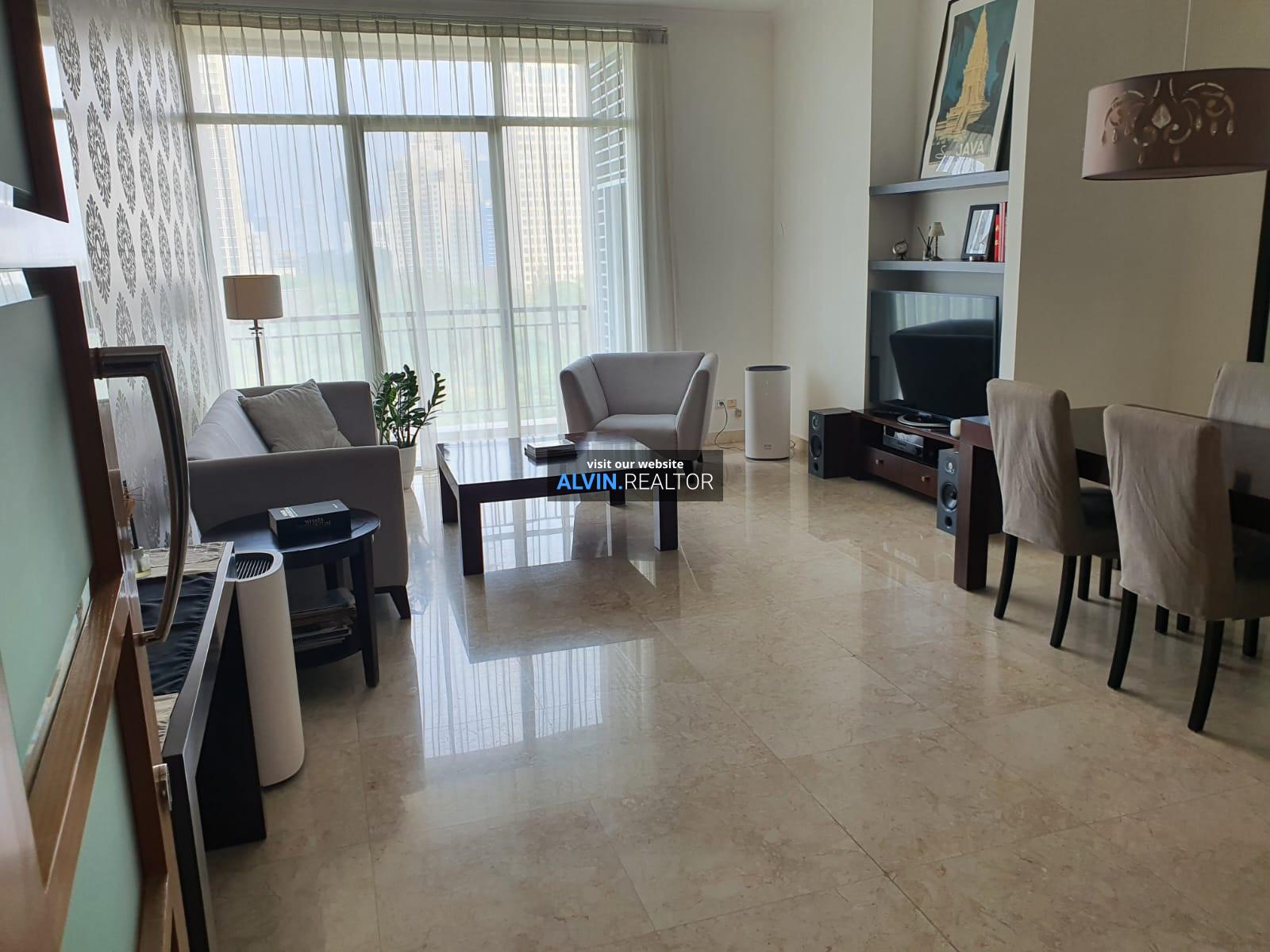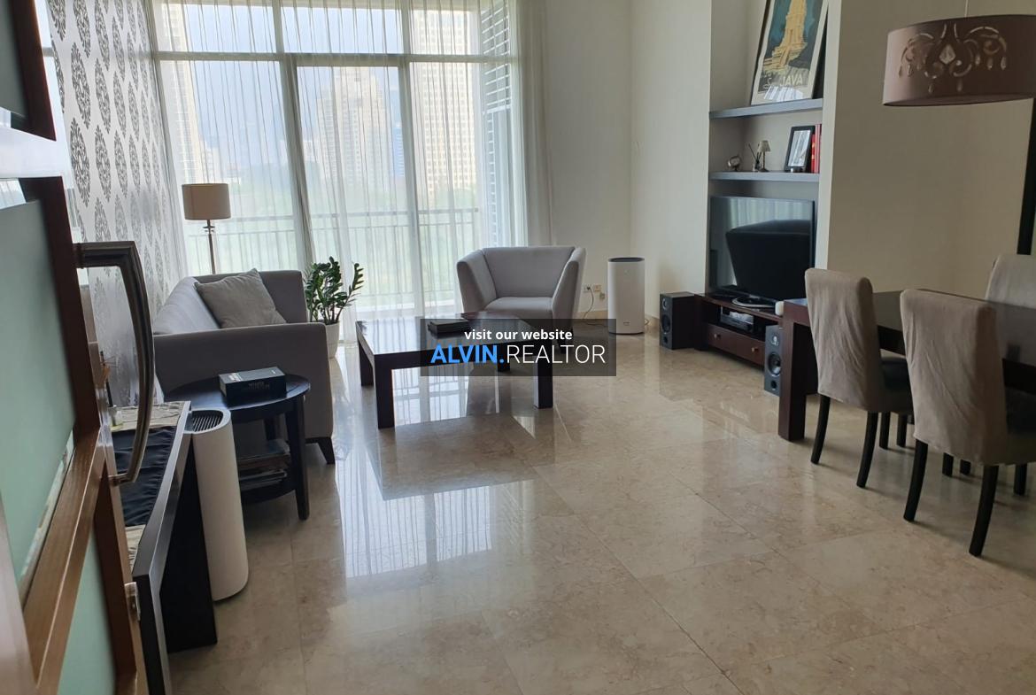 Dijual Apartemen Senayan Residence Tower 1, luas 184 m2, terdiri dari 3 kamar tidur, 2 kamar mandi, maid room, kondisi fully furnished, posisi low floor.