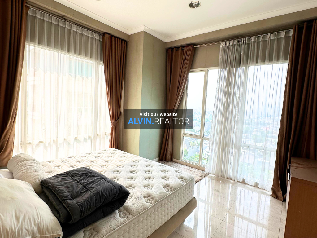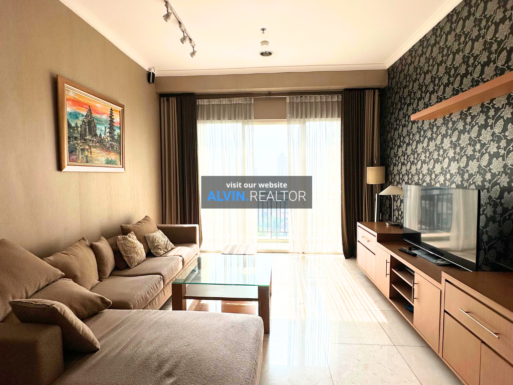 Dijual Apartemen Senayan Residence Tower 1, luas 92 m2, terdiri dari 2 kamar tidur, 2 kamar mandi, maid room, kondisi fully furnished, posisi middle floor.