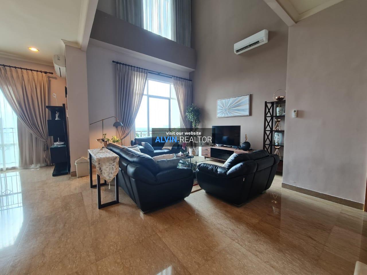 Disewa Apartemen Senayan Residence Tower 2, luas 305 m2, terdiri dari 4 kamar tidur, 4 kamar mandi, maid room, kondisi fully furnished, posisi high floor.