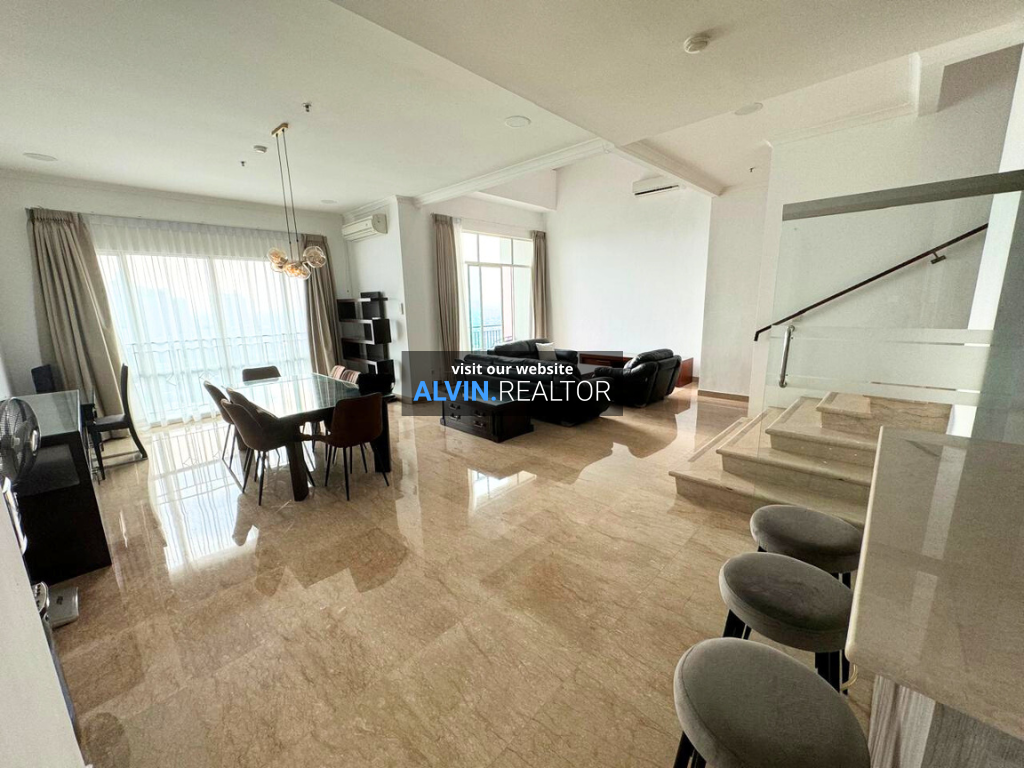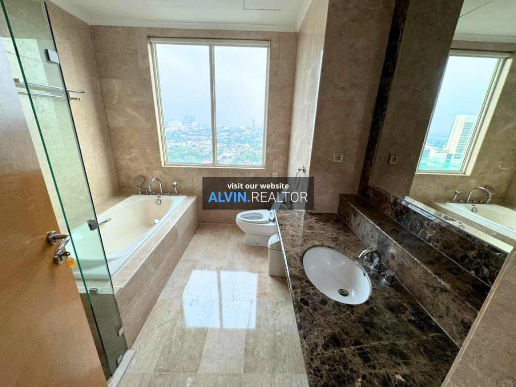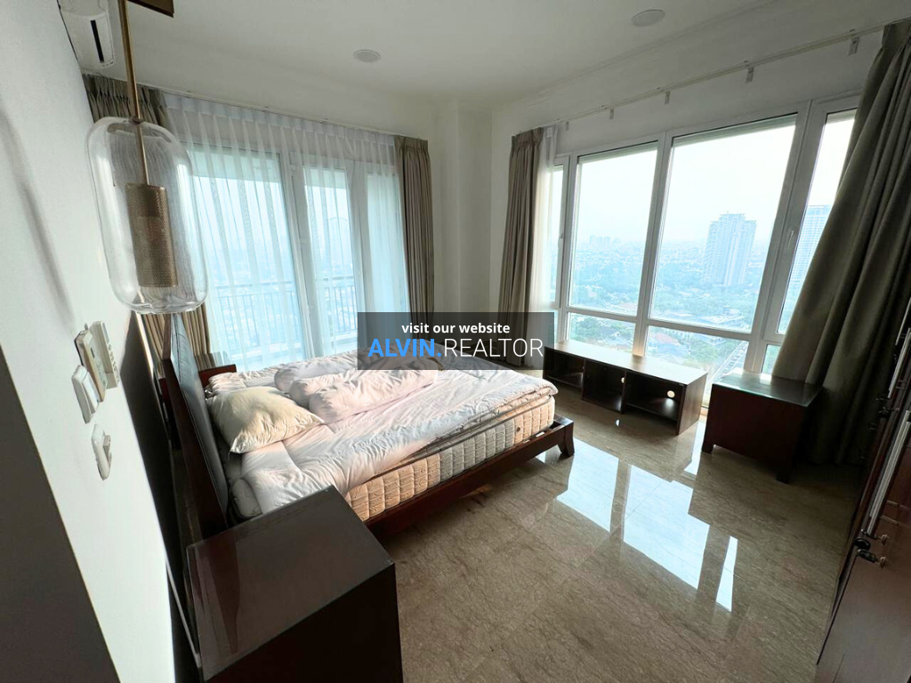 Disewa Apartemen Senayan Residence Tower 2, luas 305 m2, terdiri dari 4 kamar tidur, 4 kamar mandi, maid room, kondisi fully furnished, posisi high floor.