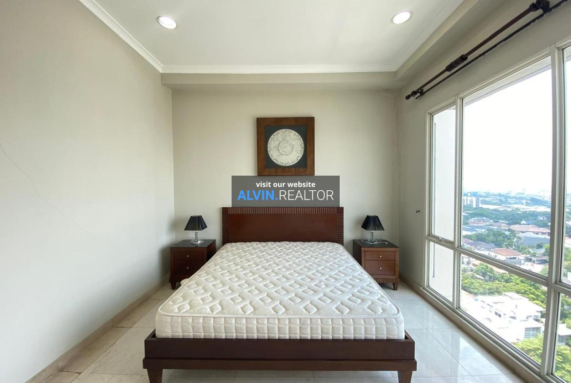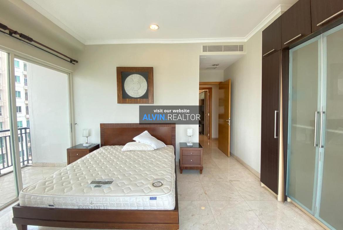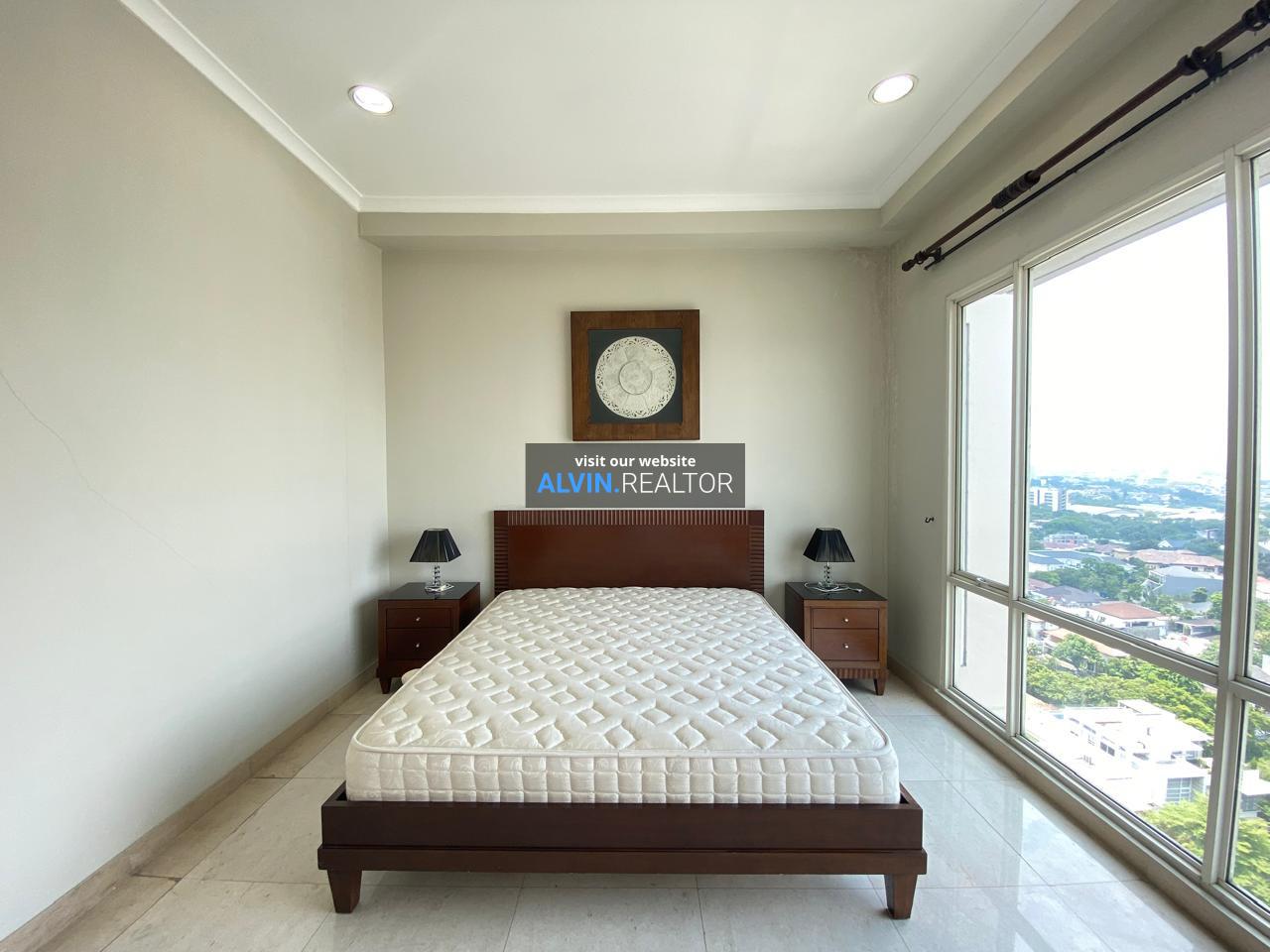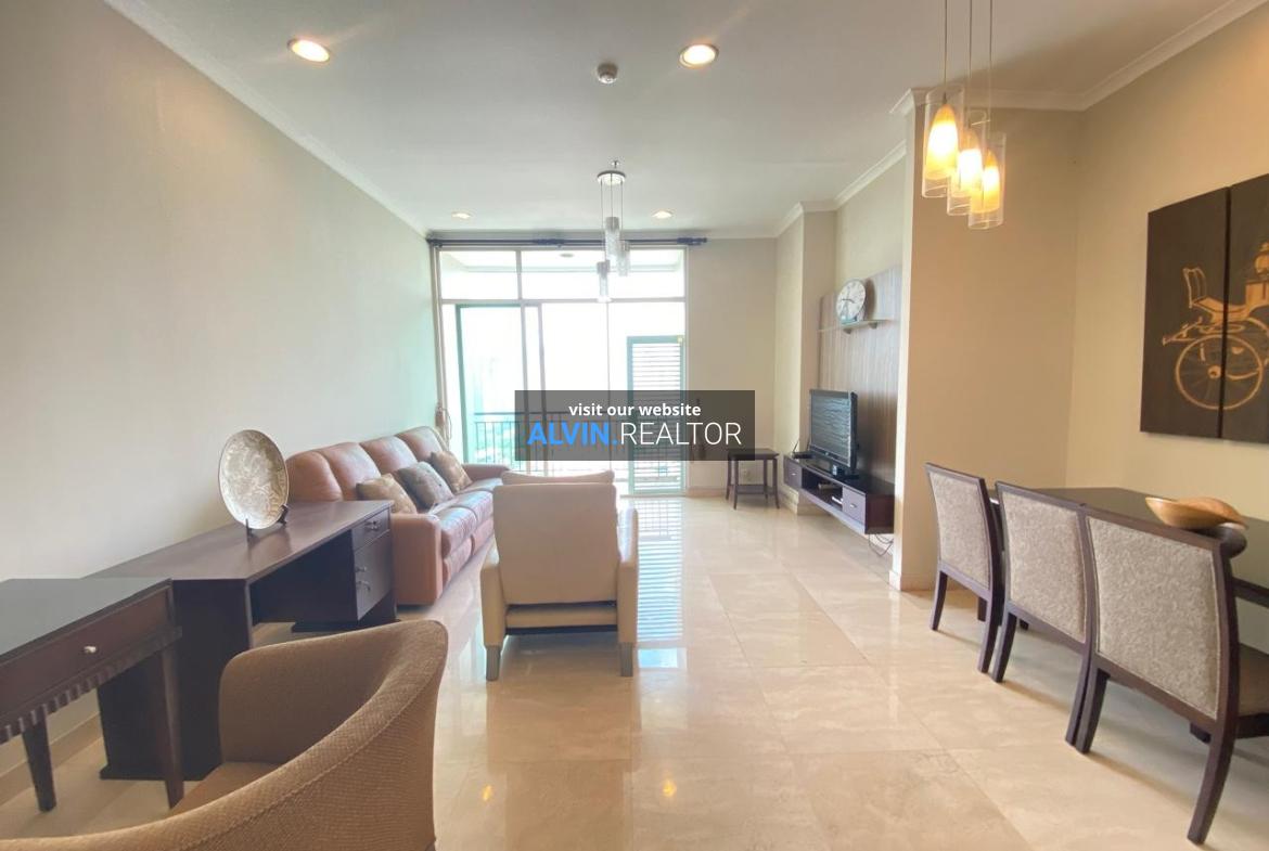 Disewa Apartemen Senayan Residence Tower 2, luas 184 m2, terdiri dari 3 kamar tidur, 2 kamar mandi, maid room, kondisi fully furnished, posisi middle floor.
