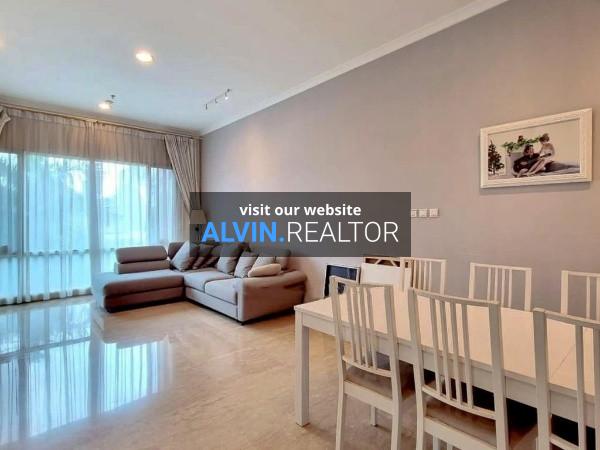 Dijual Apartemen Senayan Residence Tower 3, luas 92 m2, terdiri dari 2 kamar tidur, 2 kamar mandi, maid room, kondisi fully furnished, posisi low floor.