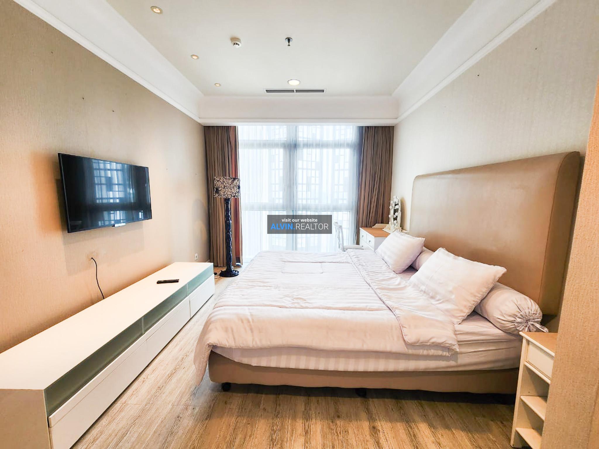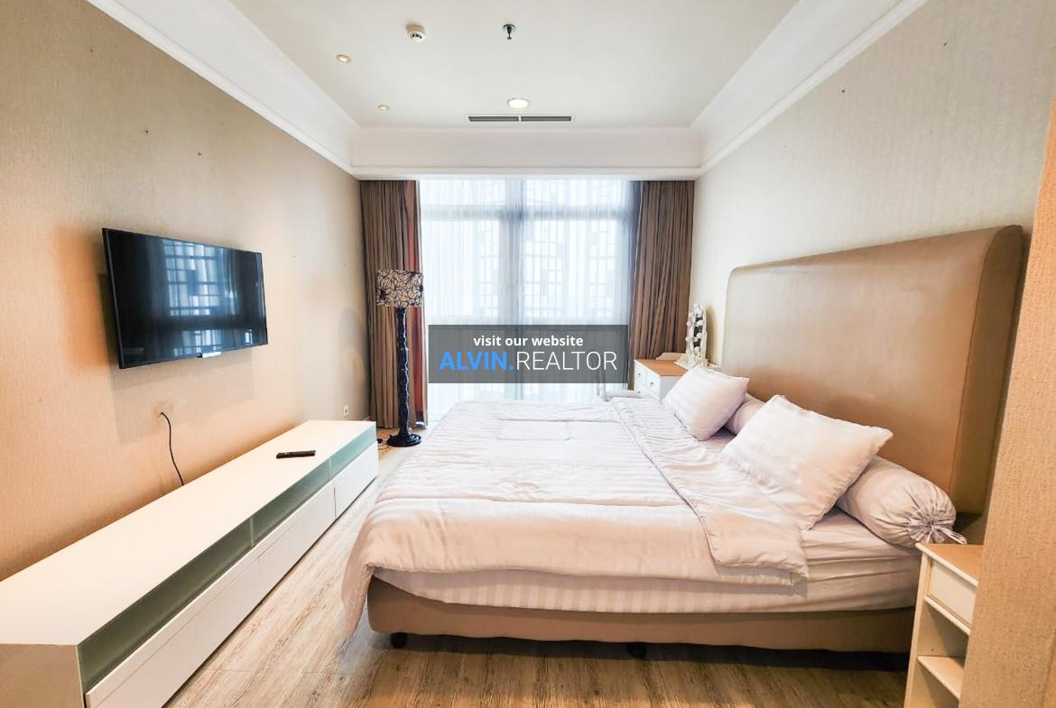 Disewa Apartemen Senopati Suites Tower 1, luas 161 m2, terdiri dari 2 kamar tidur, 2 kamar mandi, maid room, kondisi fully furnished, posisi high floor.