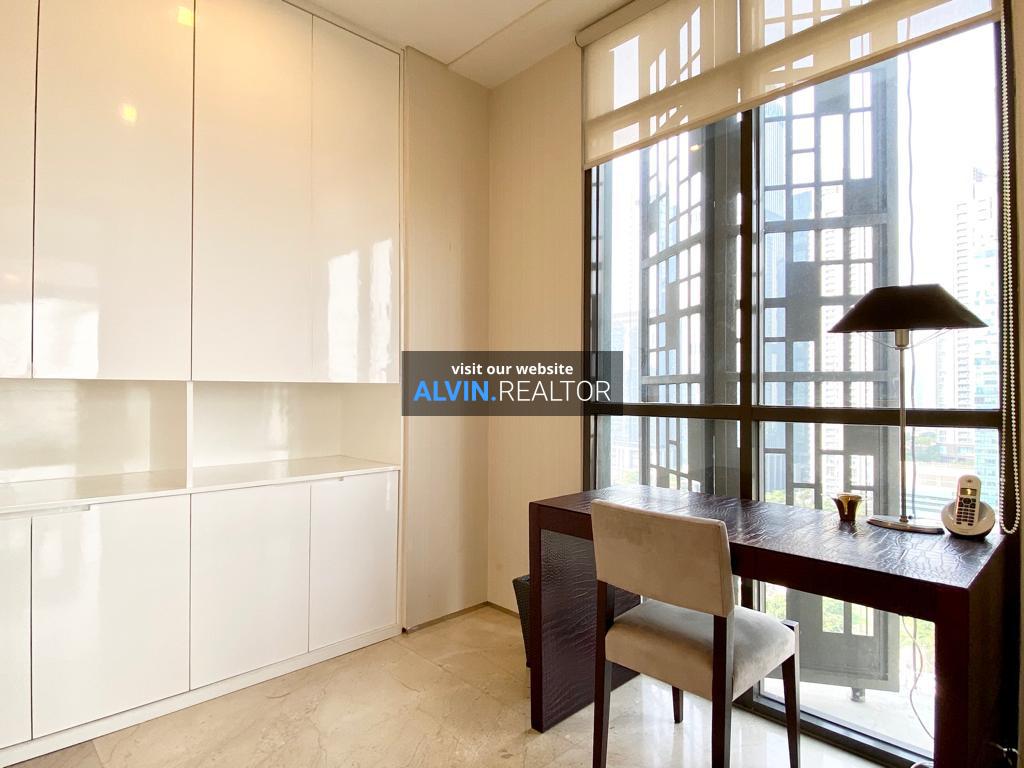 Disewa Apartemen Senopati Suites Tower 1, luas 167 m2, terdiri dari 2 kamar tidur, 2 kamar mandi, maid room, study room, kondisi fully furnished, posisi middle floor.