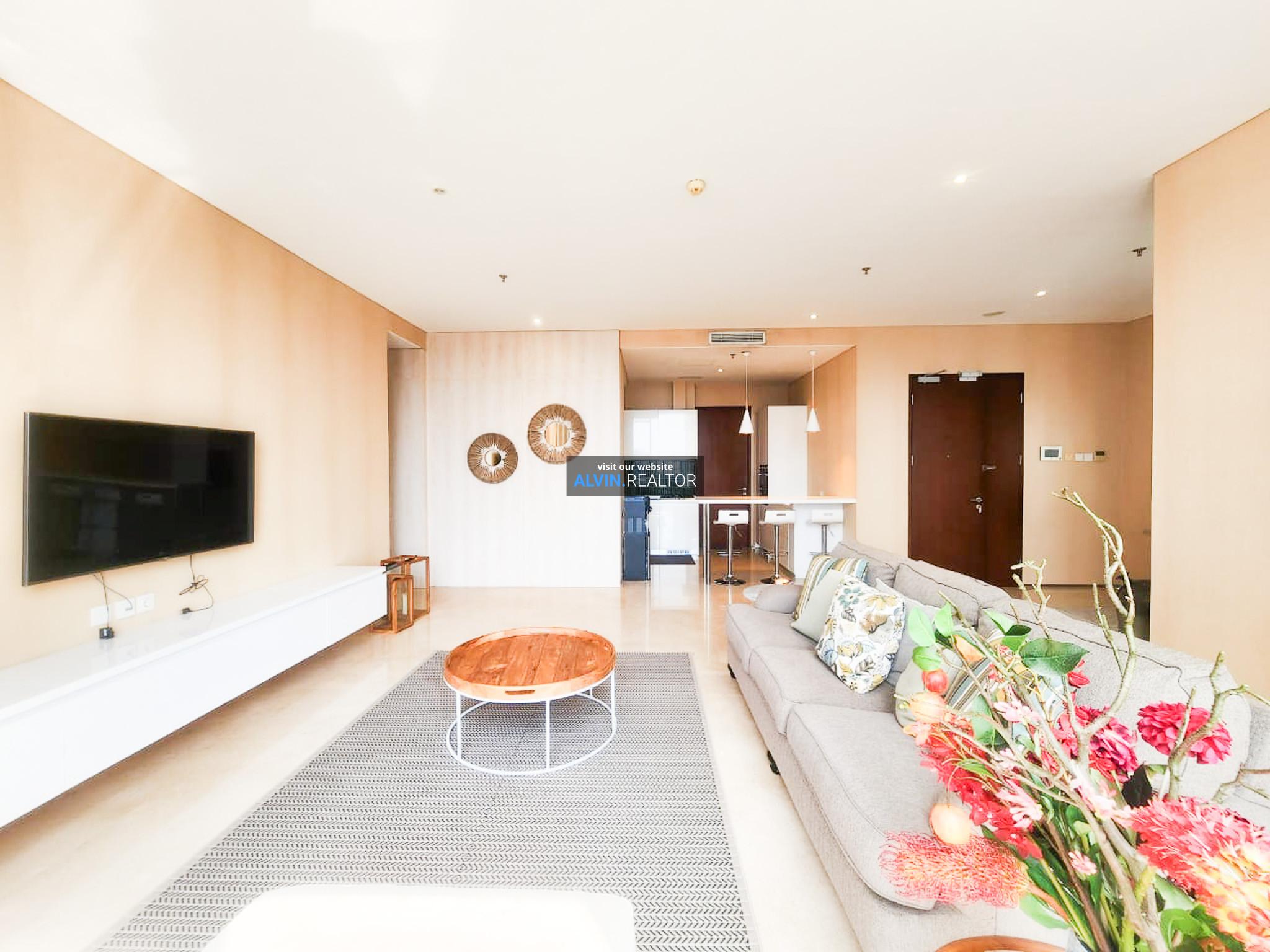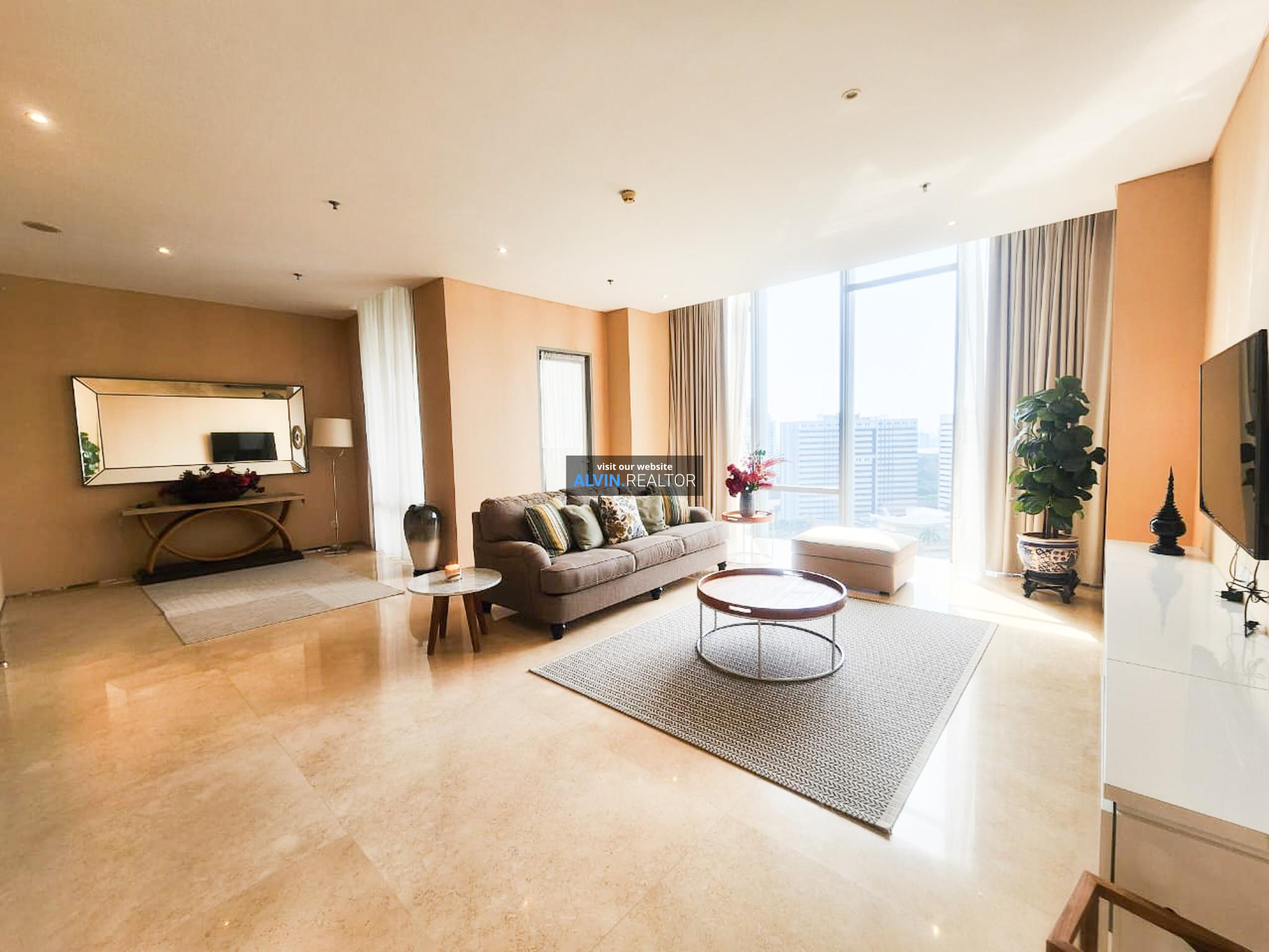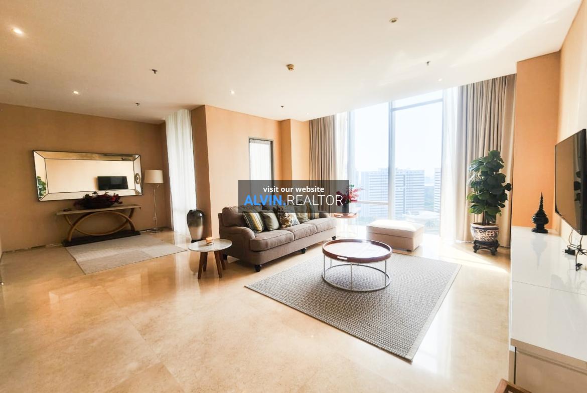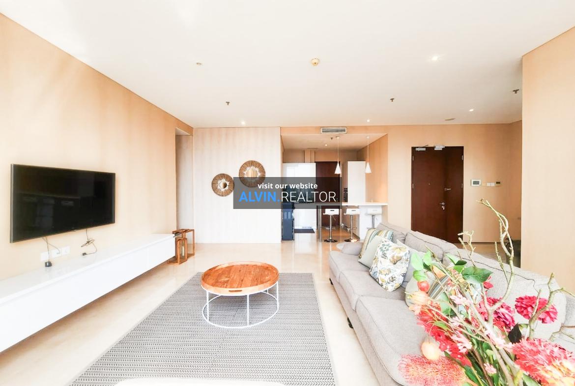 Dijual Apartemen Senopati Suites Tower 2, luas 165 m2, terdiri dari 2 kamar tidur, 2 kamar mandi, maid room, kondisi fully furnished, posisi middle floor.