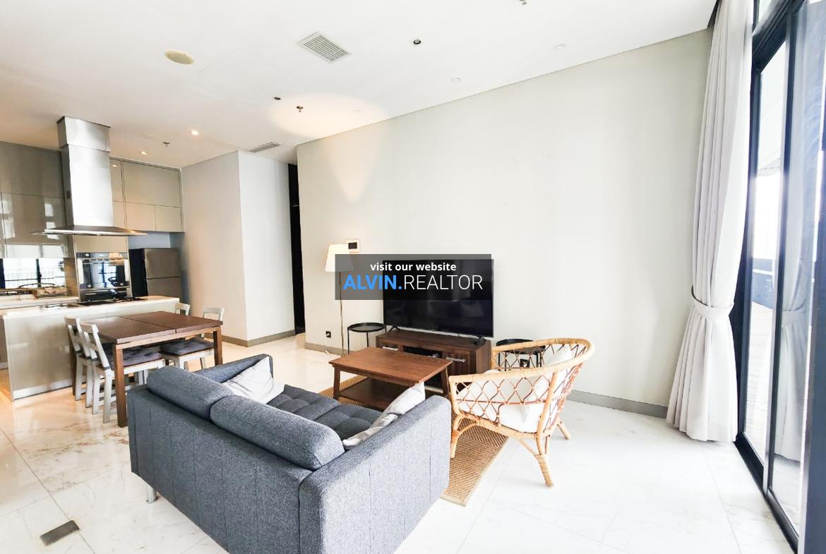 Disewa Apartemen Senopati Suites Tower 3, luas 150 m2, terdiri dari 2 kamar tidur, 2 kamar mandi, maid room, kondisi fully furnished, posisi high floor.