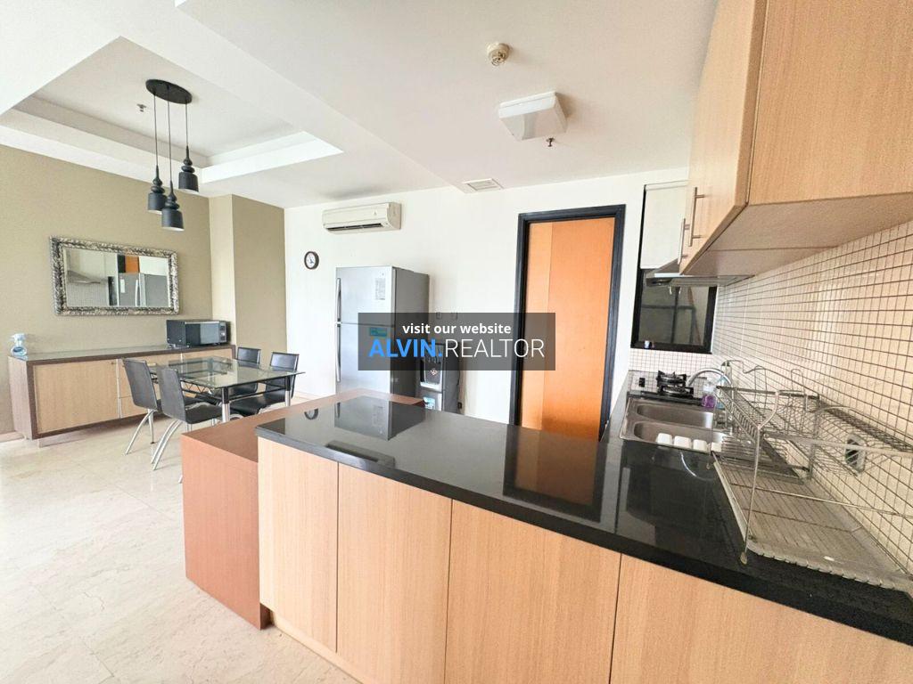 Disewa Apartemen Setiabudi Residence Tower A, luas 142 m2, terdiri dari 3 kamar tidur, 2 kamar mandi, maid room, kondisi fully furnished, posisi high floor.