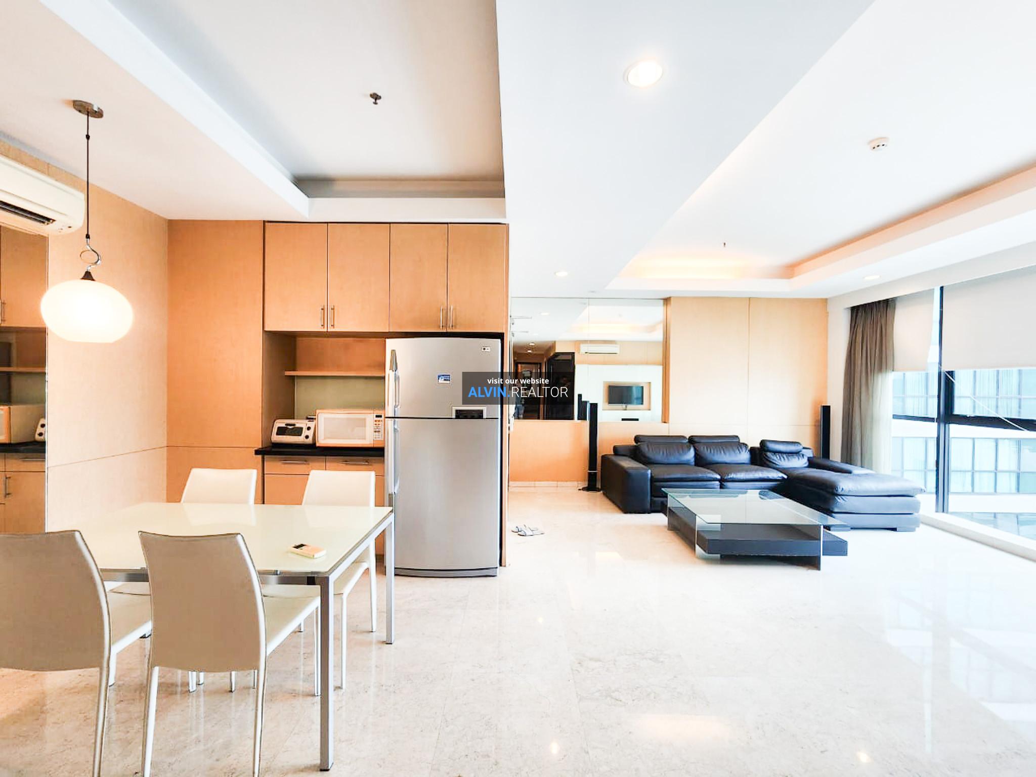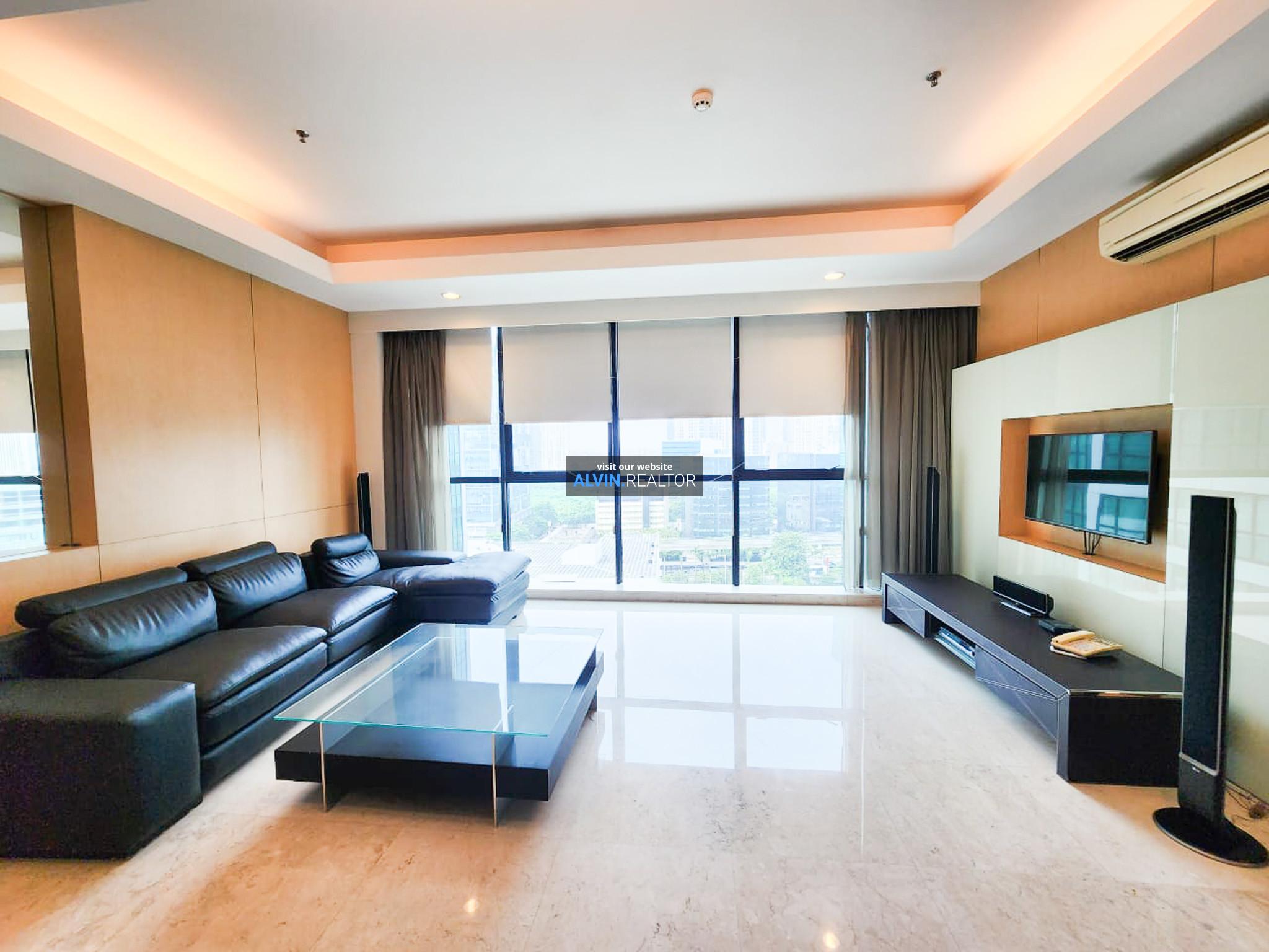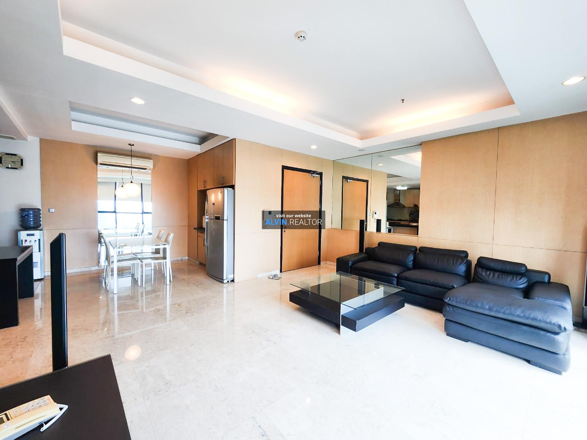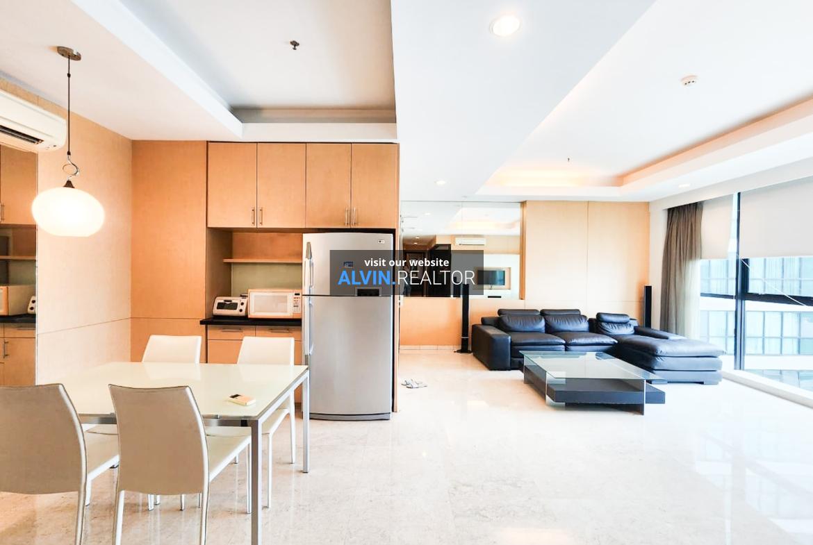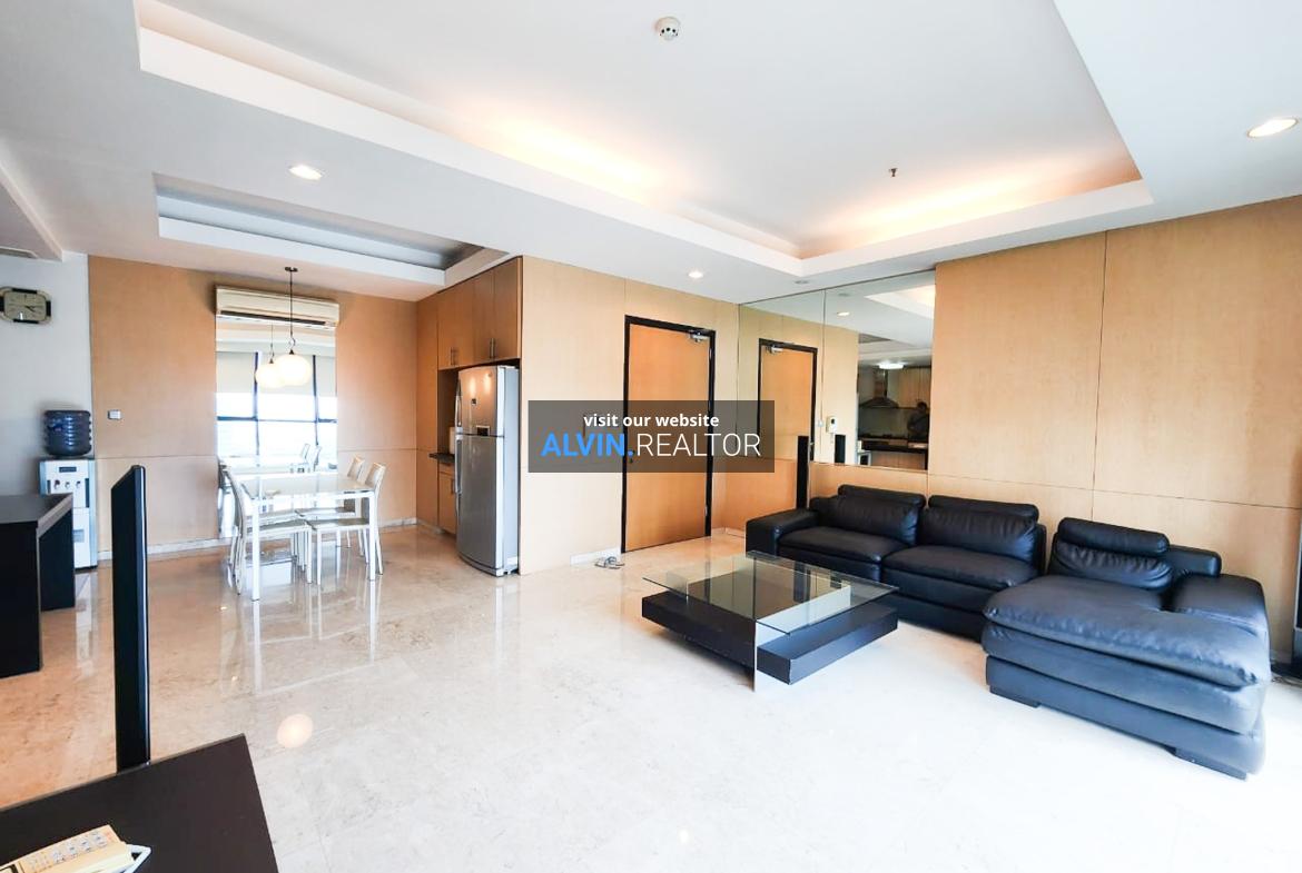 Dijual Apartemen Setiabudi Residence Tower A, luas 142 m2, terdiri dari 3 kamar tidur, 2 kamar mandi, maid room, kondisi fully furnished, posisi middle floor.