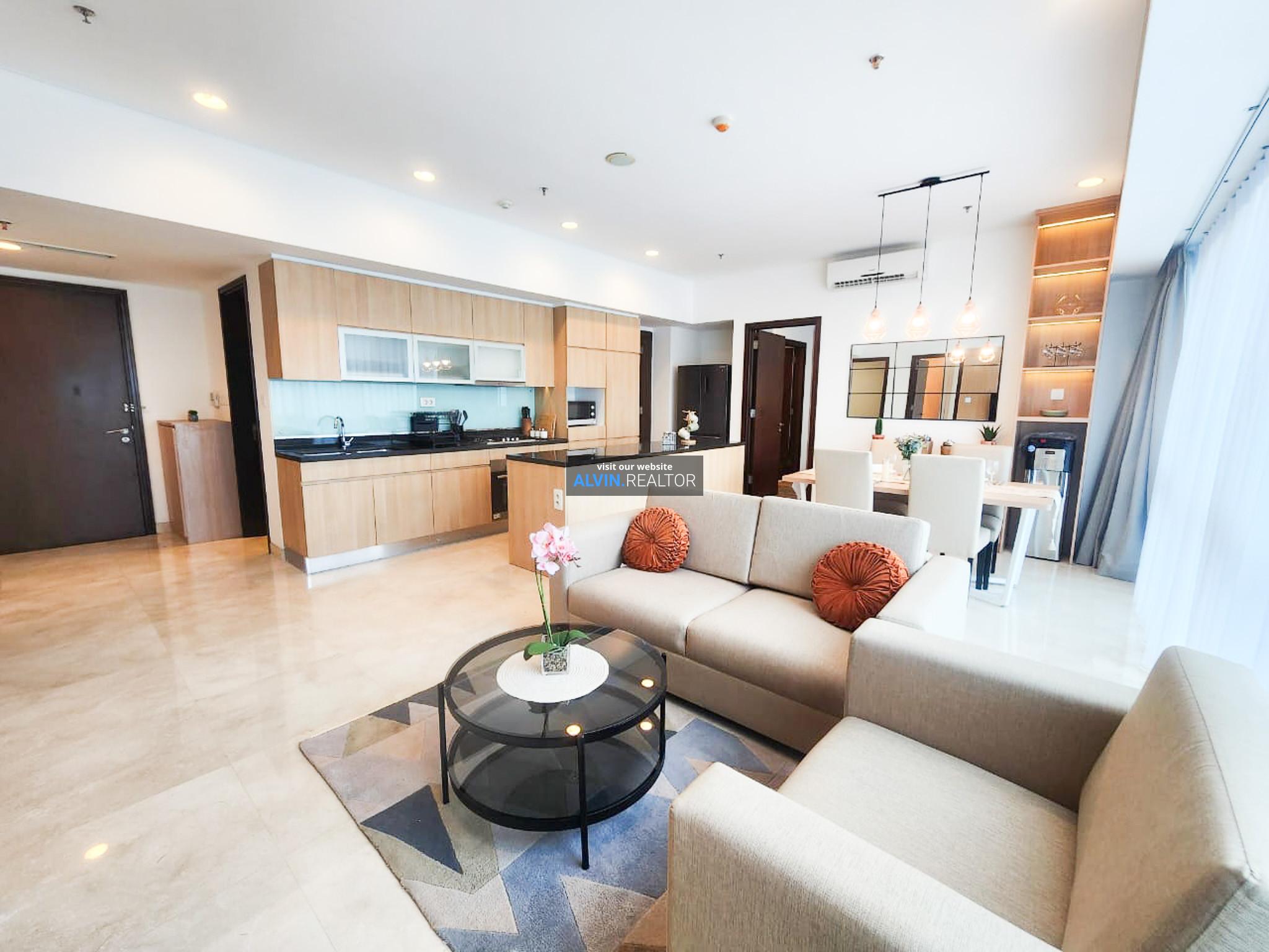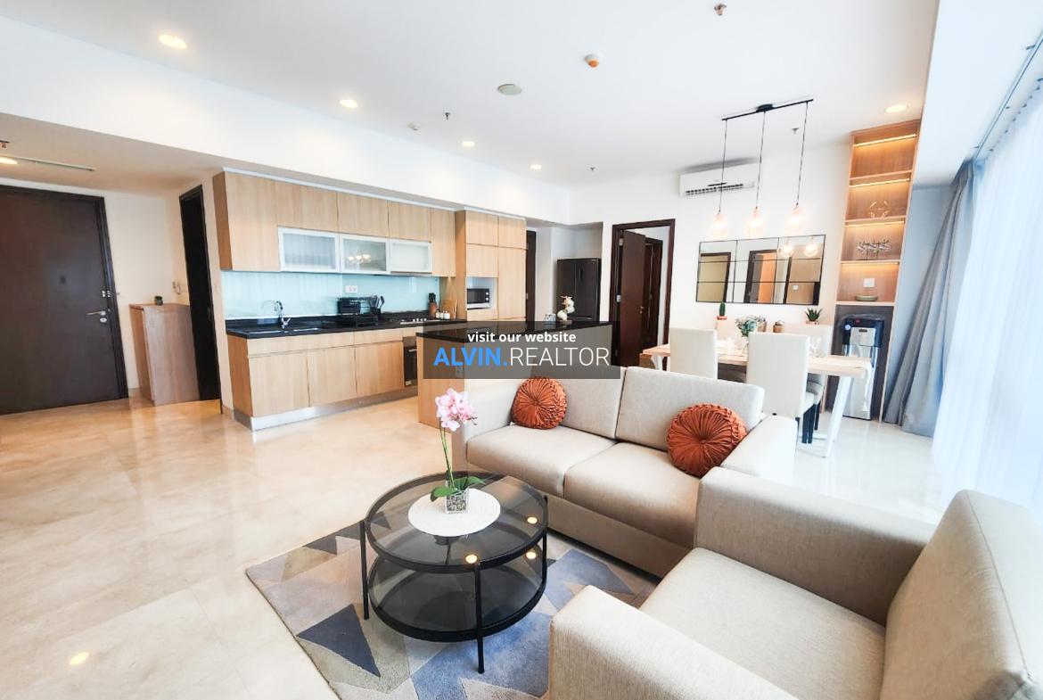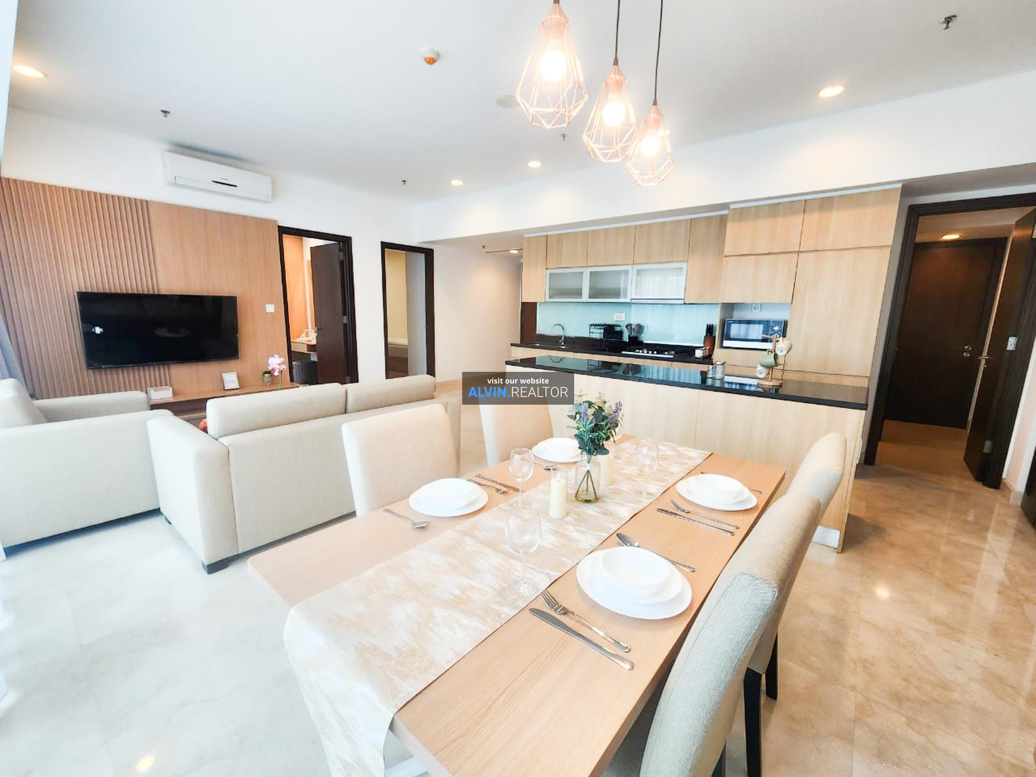 Dijual Apartemen Setiabudi Sky Garden Tower Sky, luas 135 m2, terdiri dari 3 kamar tidur, 2 kamar mandi, maid room, kondisi fully furnished, terletak di lantai 2 (LOW), unit Sky 208.